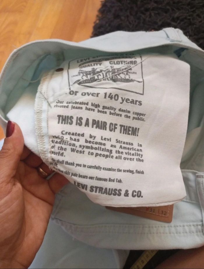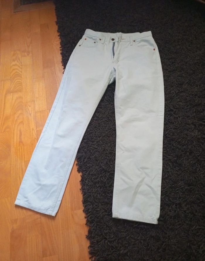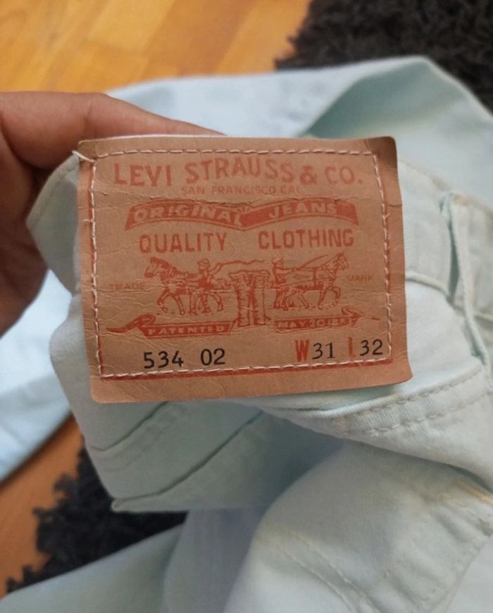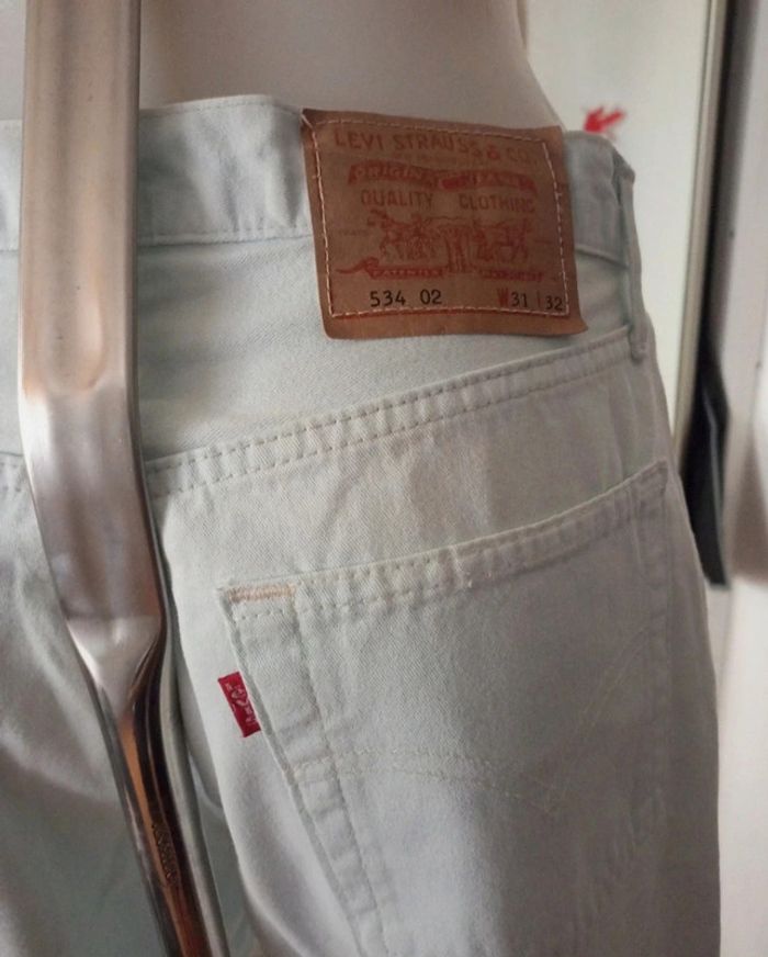 Jean Levi's taille haute il fait 100 cm de long. Taille w 31/L 32. Fermeture éclair. Couleur turquois claire effet délavé. 100 % coton fabriqué en Italie. Il est neuf j'avais mis. Pour plus de renseignements n'hésitez pas 😉