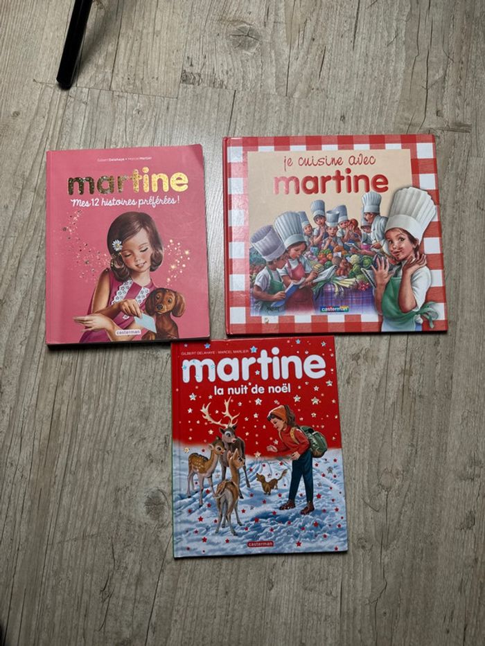 Lot de 3 livres Martine Je cuisine avec Martine Martine mes 12 histoires préférées Martine la nuit de Noël Plus un livre Martine qui n est pas sur la photo mais rajoute avec le lot ( gratuit car crayon sur couverture et 2 premières pages )