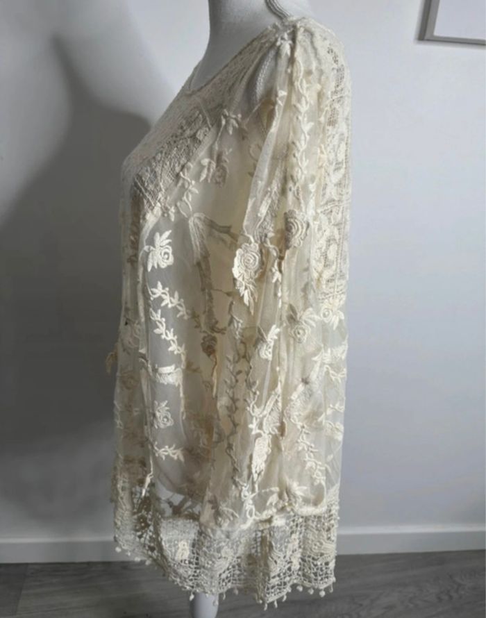 Paréo oversize broderies dentelle beige crème Vintage TU - photo numéro 3