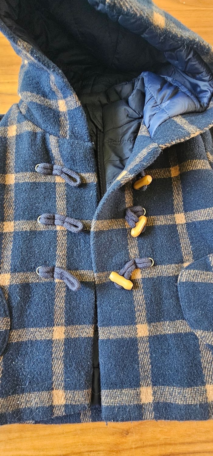 Très beau manteau duffle coat , doudoune integree . Bouloche un peu Fermeture éclair ok. Attaches ok. Pas de tâche. Maison Sans animaux et non fumeur Conservé au sec dans dressing #fanny6mois #fanny6moisgarcon #jolienyny