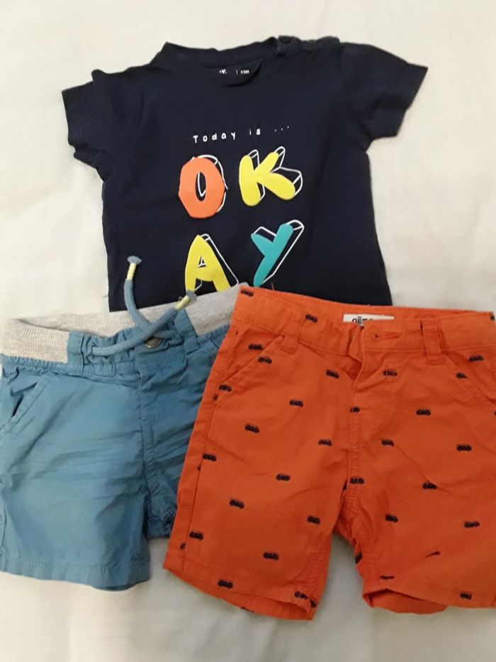 Lots 3 pièces comprenant ( en 12 Mois ) 1 short ( réglable à la taille ) 1 short avec élastique 1 tee-shirts