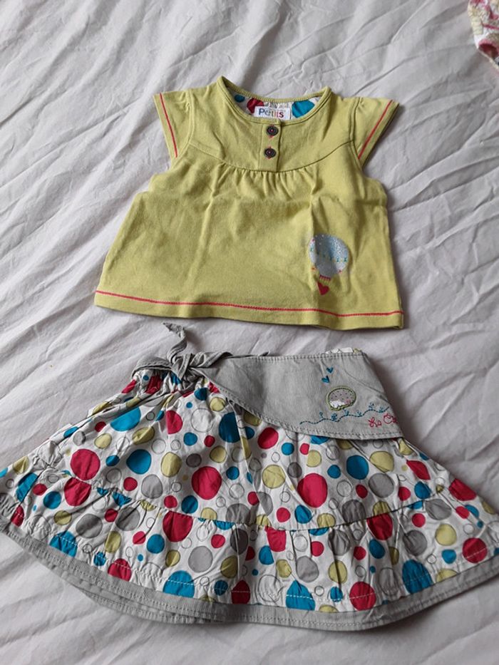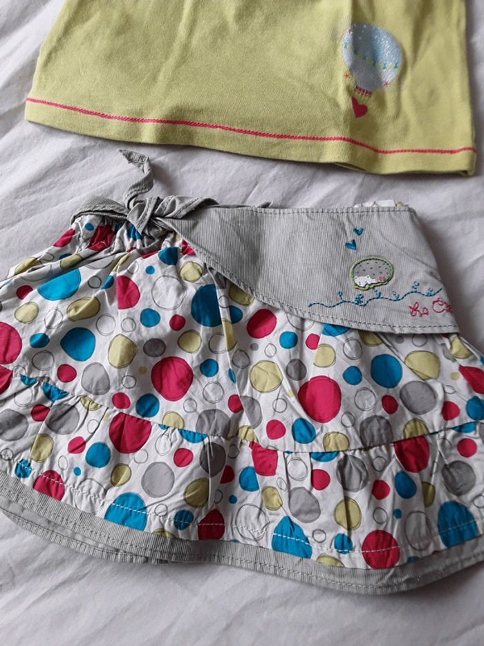Lots de 2 ensembles en 12 mois fille comprenant 1 haut et son short 1 haut et sa jupe