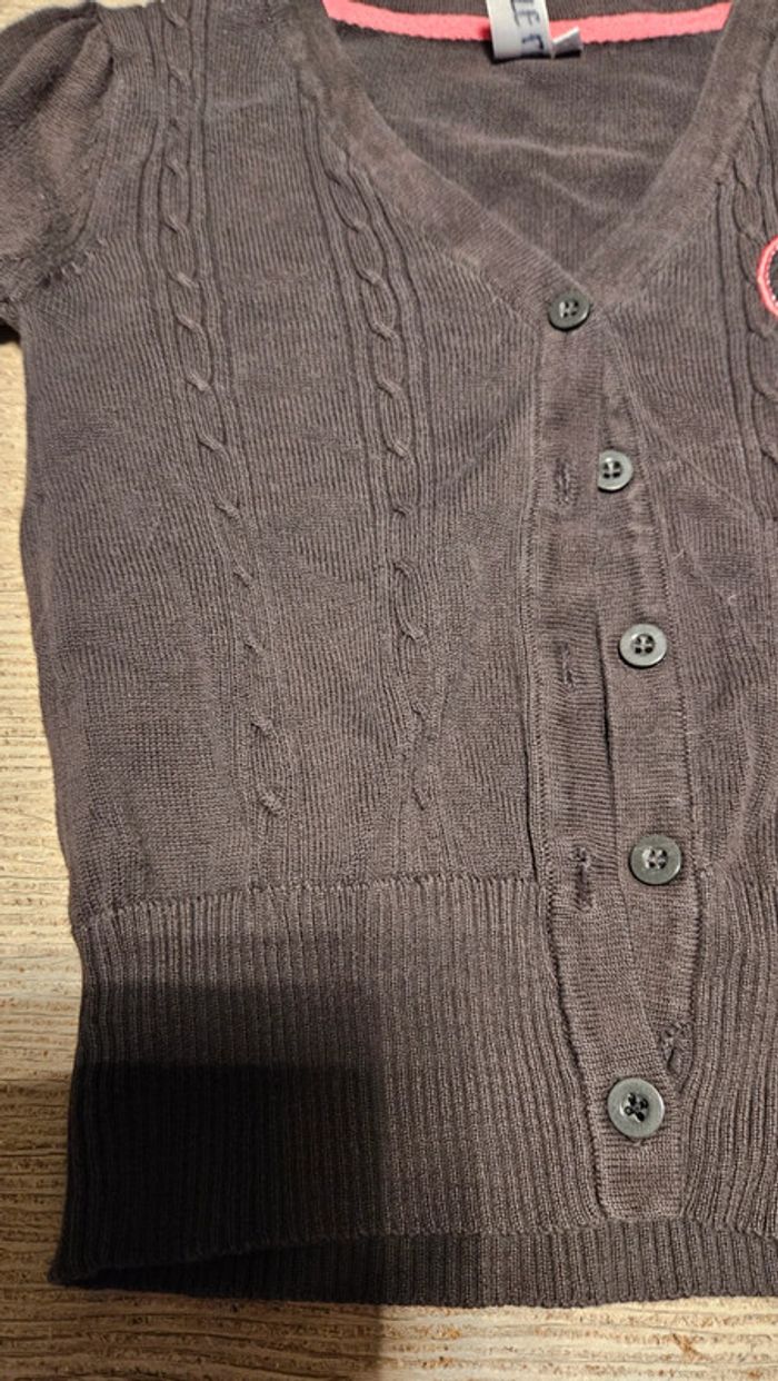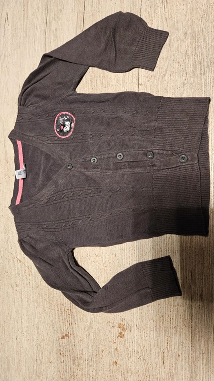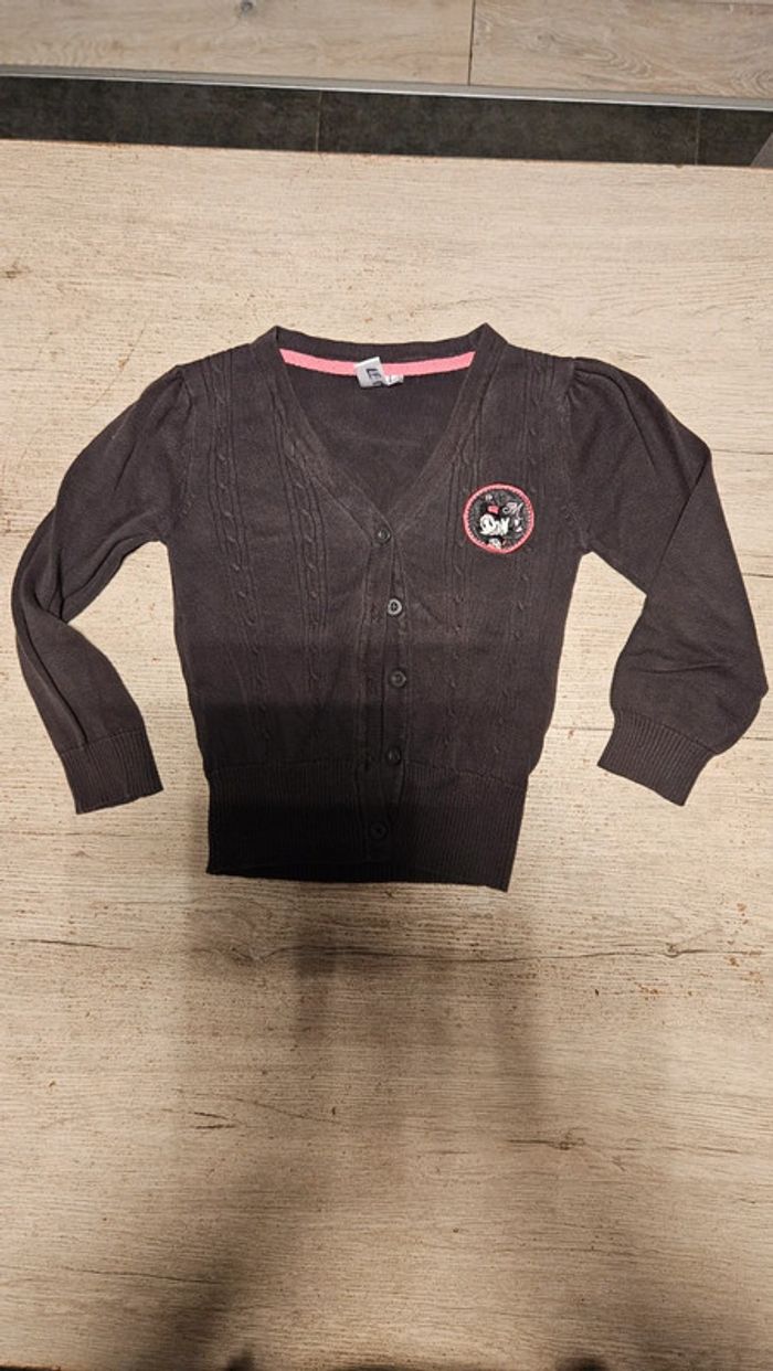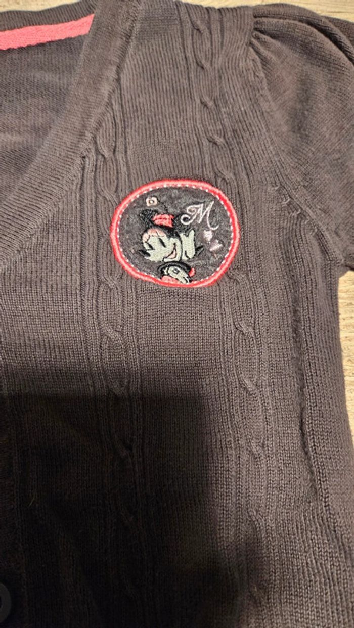 Gilet gris foncé torsadé, à manches longues, Disney, Minnie, 5 ans, peu mis