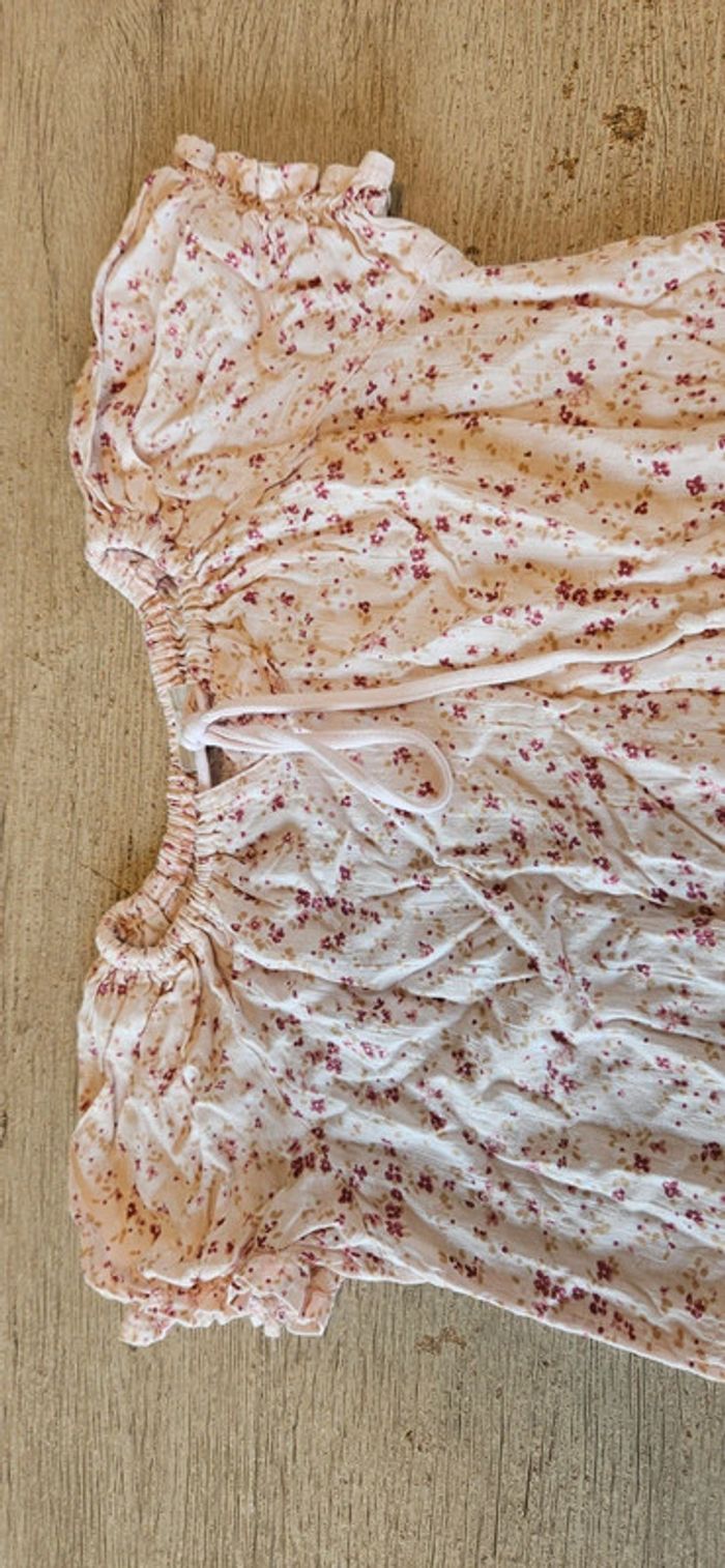 Blouse large d été. Elle est légère. En très bon état car mise que quelques fois. Petit noeud devant pour règler le col. Convient bien pour du 6 ans #deborahtock_6ans