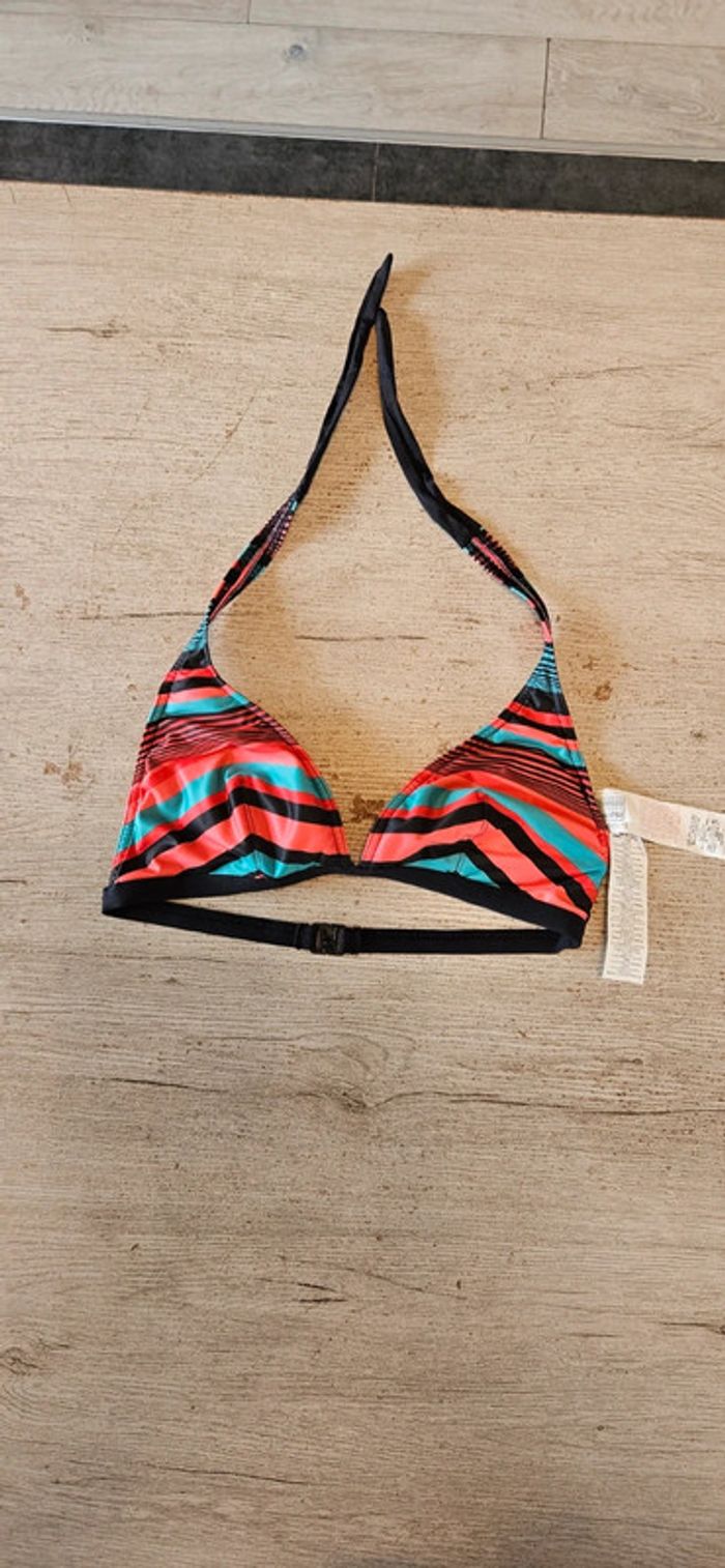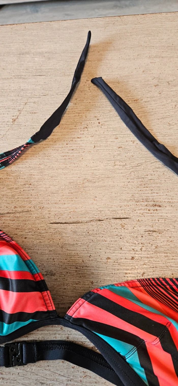 Haut de maillot jamais mis mais sans étiquette car lavé. Il est légèremenr rembouré mais le rembourage peut s enlever. Clips dans le dos et bretelles règlables. Convient pour du 40 à 46 #deborahtock_sport #deborahtock_accessoires