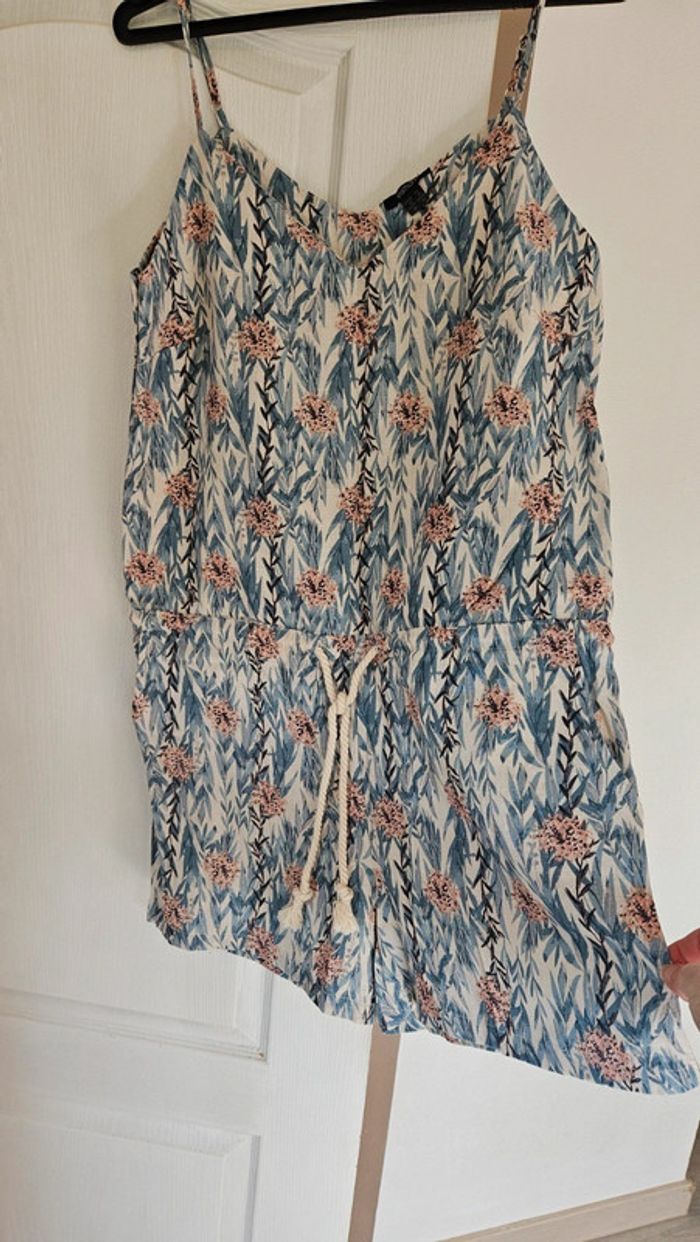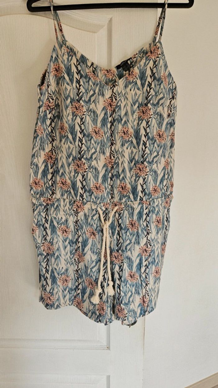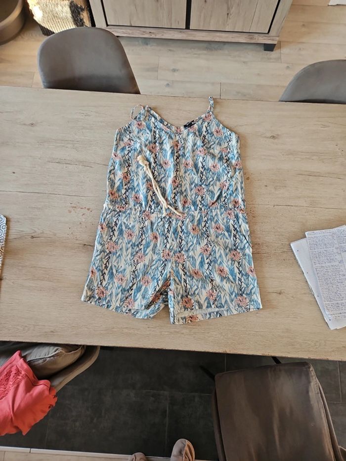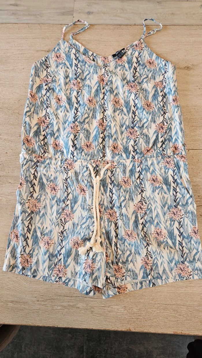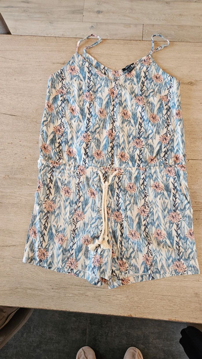 Joli combi short d été en lin et viscose. A bretelles règlables. Ajustable à la taille par 1 cordon. Acheté l année passée mais jamais mis. Sans étiquette car lavé. Assez épais donc pas du tout transparent. Poche de chaque côté. Convient pour du 44 ou 46 #deborahtock_femmeXXL