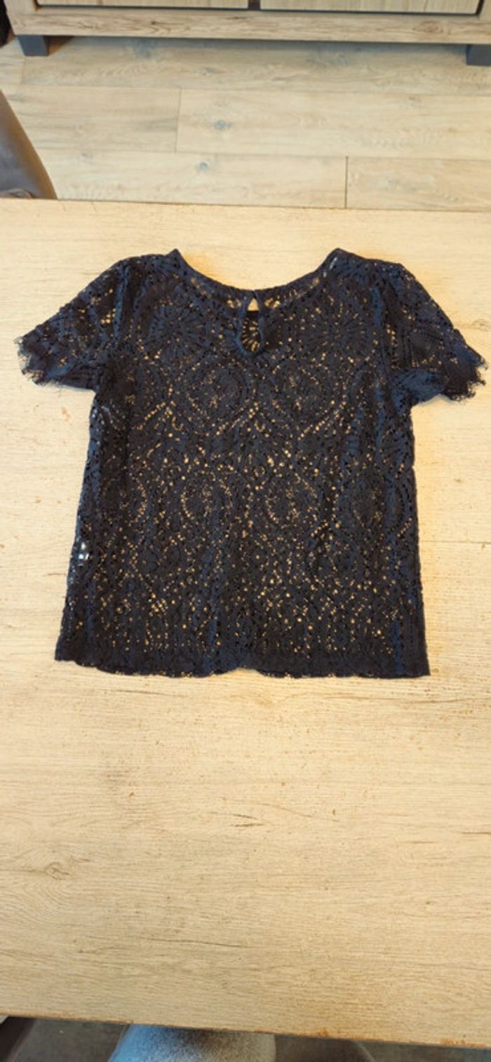 Blouse noire brodée à manches courtes, Kiabi, taille 34, nickel - photo numéro 1