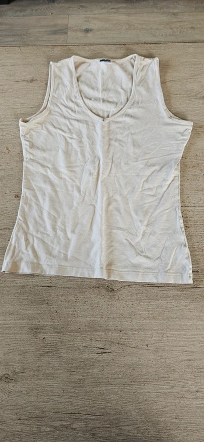 Débardeur beige à col en V. Très élastique. Très peu mis donc nickel Convient bien poue du 40 à 42 #deborahtock_femmeL #deborahtock_femmeXL