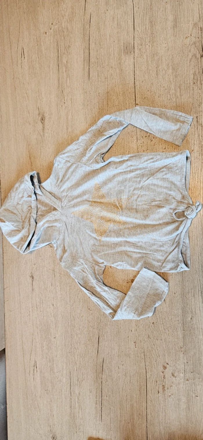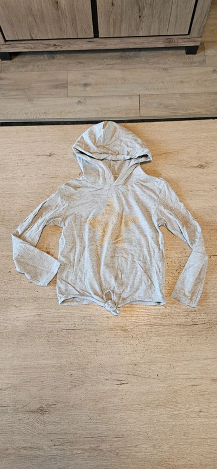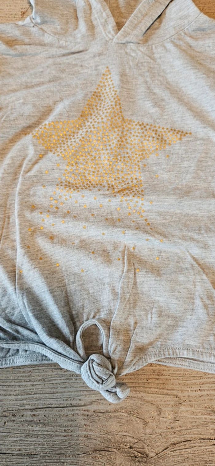 Joli pull à capuche gris clair avec une étoile formée par des étoiles dorées sur le devant. En excellent état, mis 1 ou 2 fois Convient bien pour du 6 à 8 ans #deborahtock_8ans
