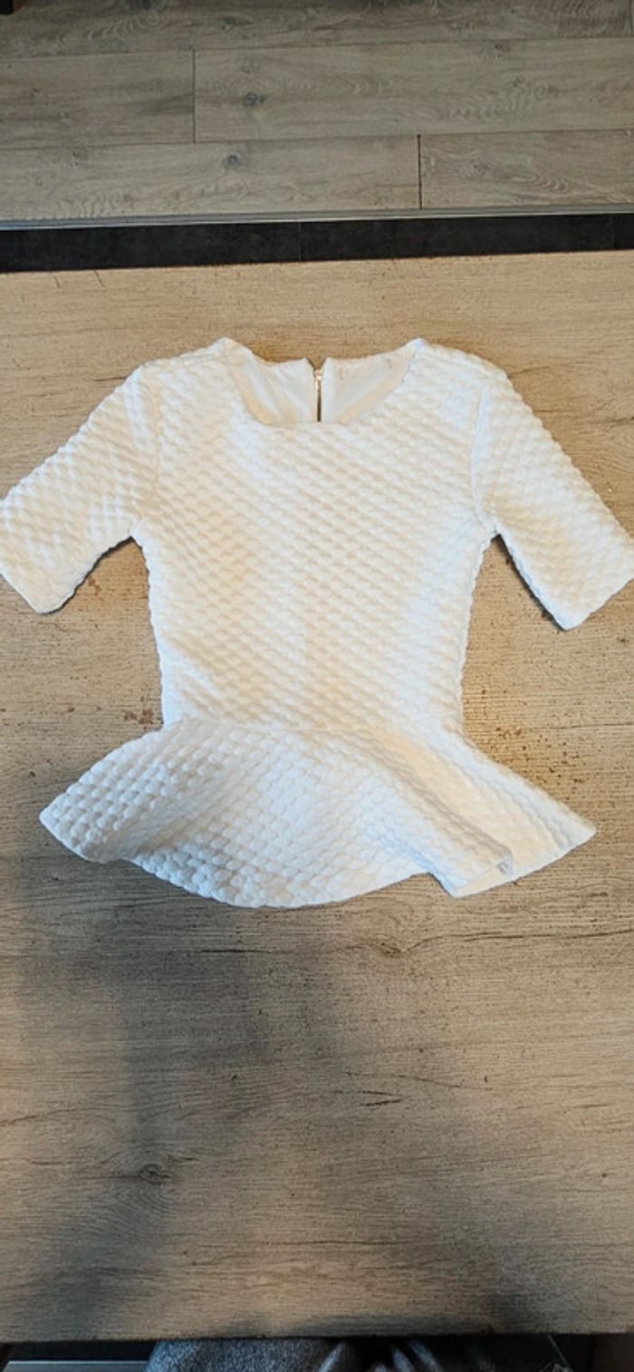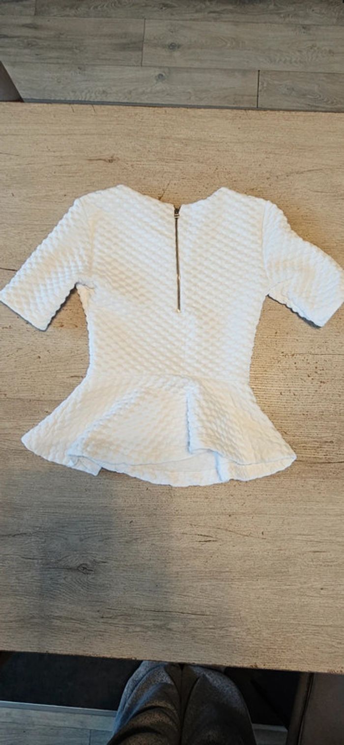 Jolie blouse vintage blanche. Elle a des manches 3/4. Mise 1 fois. Convient pour du 7 à 8 ans. Se ferme par 1 tirette dans le dos. Petits points en relief. Attention, l étiquette a été enlevée, je pense qu elle vient de chez Zara. Je suis certaine de la taille #deborahtock_7ans #deborahtock_8ans