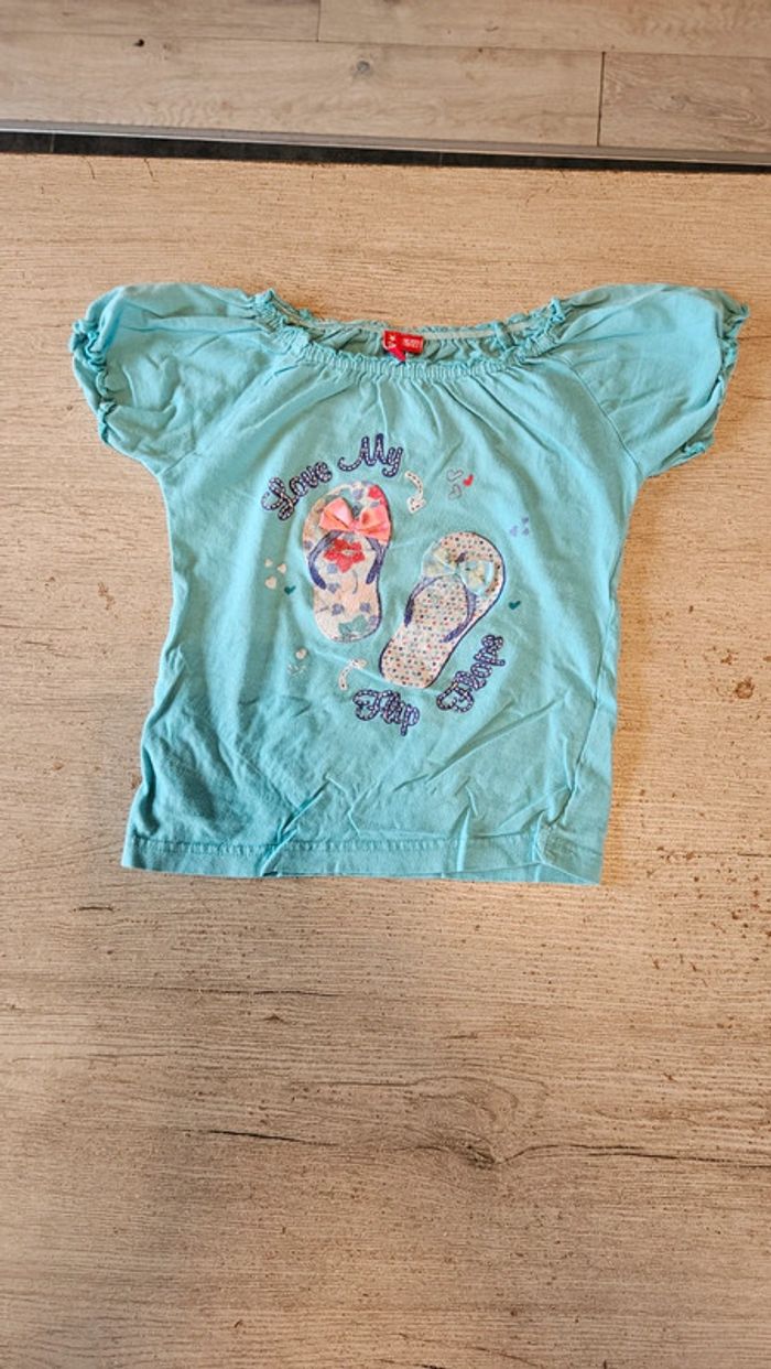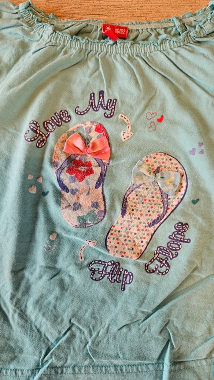 T shirt turquoise à manches courtes, avec tongues, Girls, 6/7 ans, peu mis - photo numéro 2