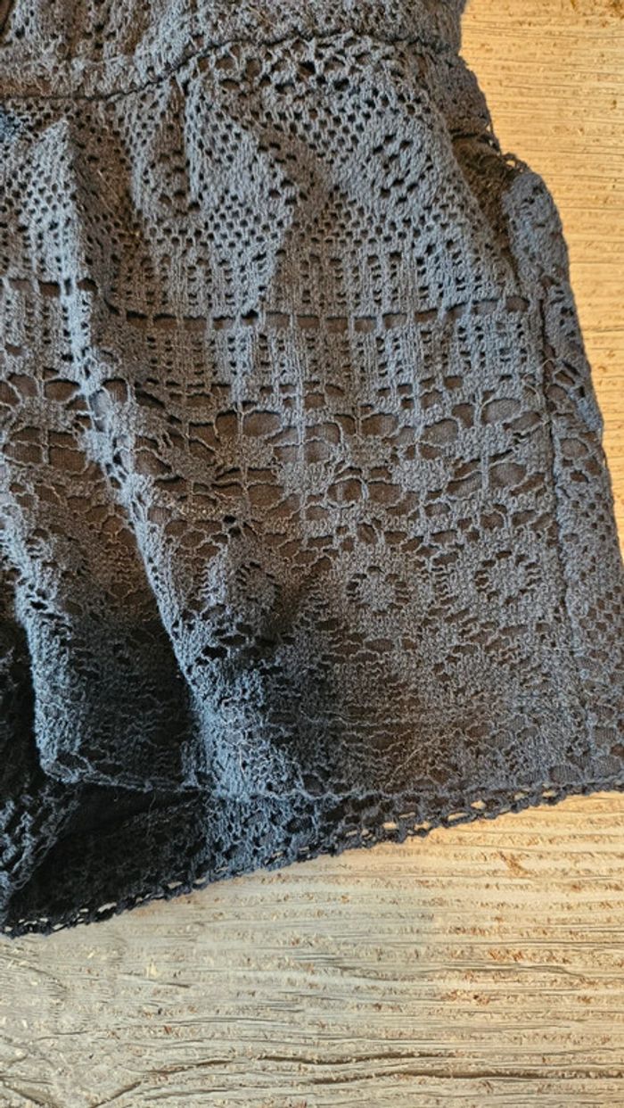 Joli combi short noir avec broderie doublée. Ceintré à la taille. Col rond avec 1 froufrou. Neuf avec étiquette. Acheté 13€ en promo. Convient pour du 5 à 6 ans. Bretelles non règlables #deborahtock_5ans #deborahtock_6ans