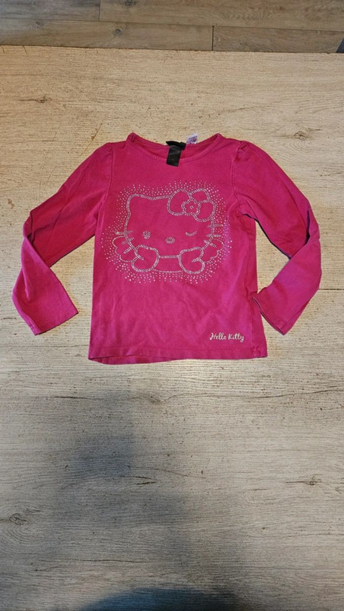 T shirt de chee H&M avec Hello Kitty. L étiquette intérieure est effacée mais c est bien du 5 ans. Il manque 1 perle, en haut du dessin, voir dernière photo #deborahtock_5ans