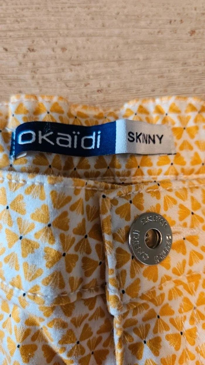 Pantalon skinny, jaune et blanc, ajustable, Okaïdi, 14 ans, nickel - photo numéro 2