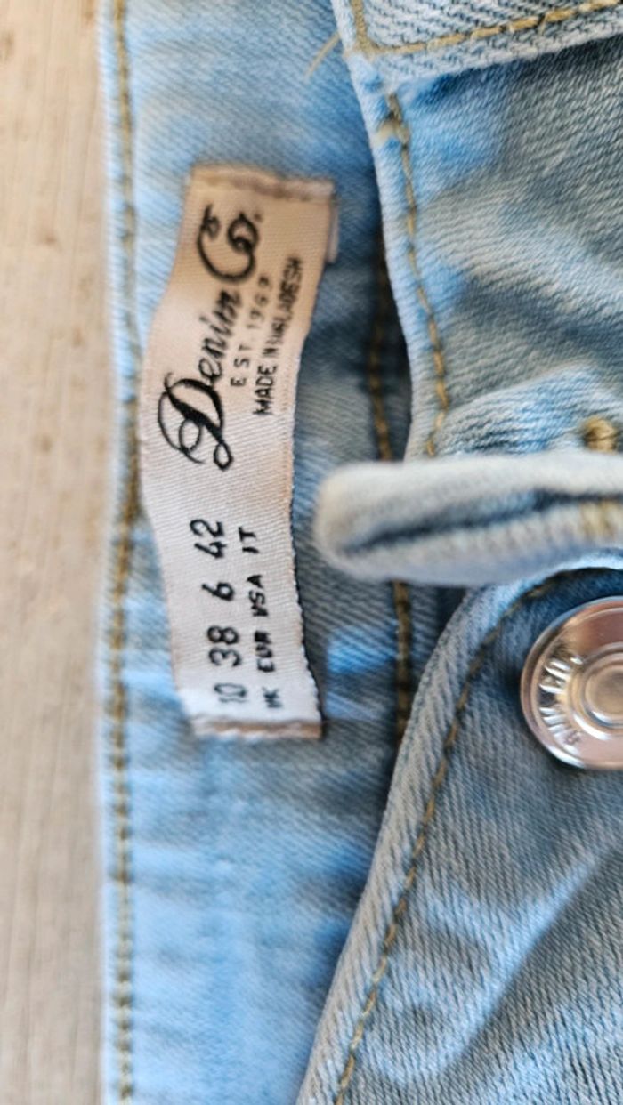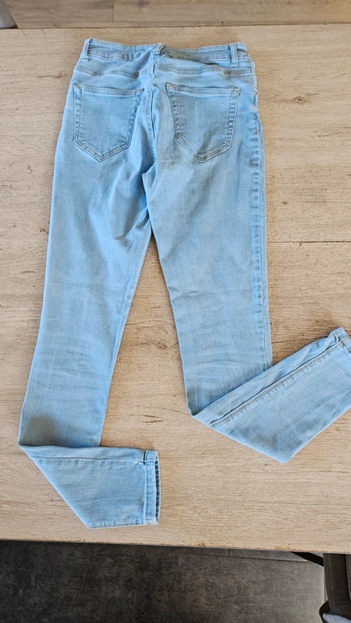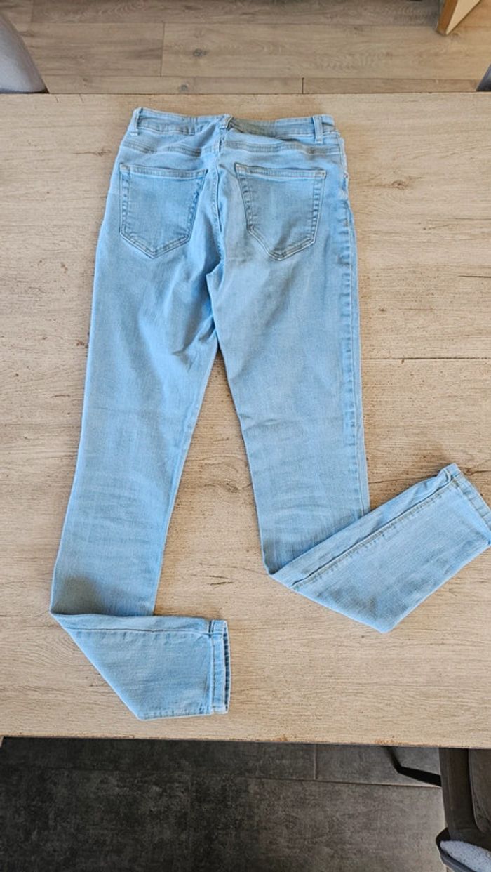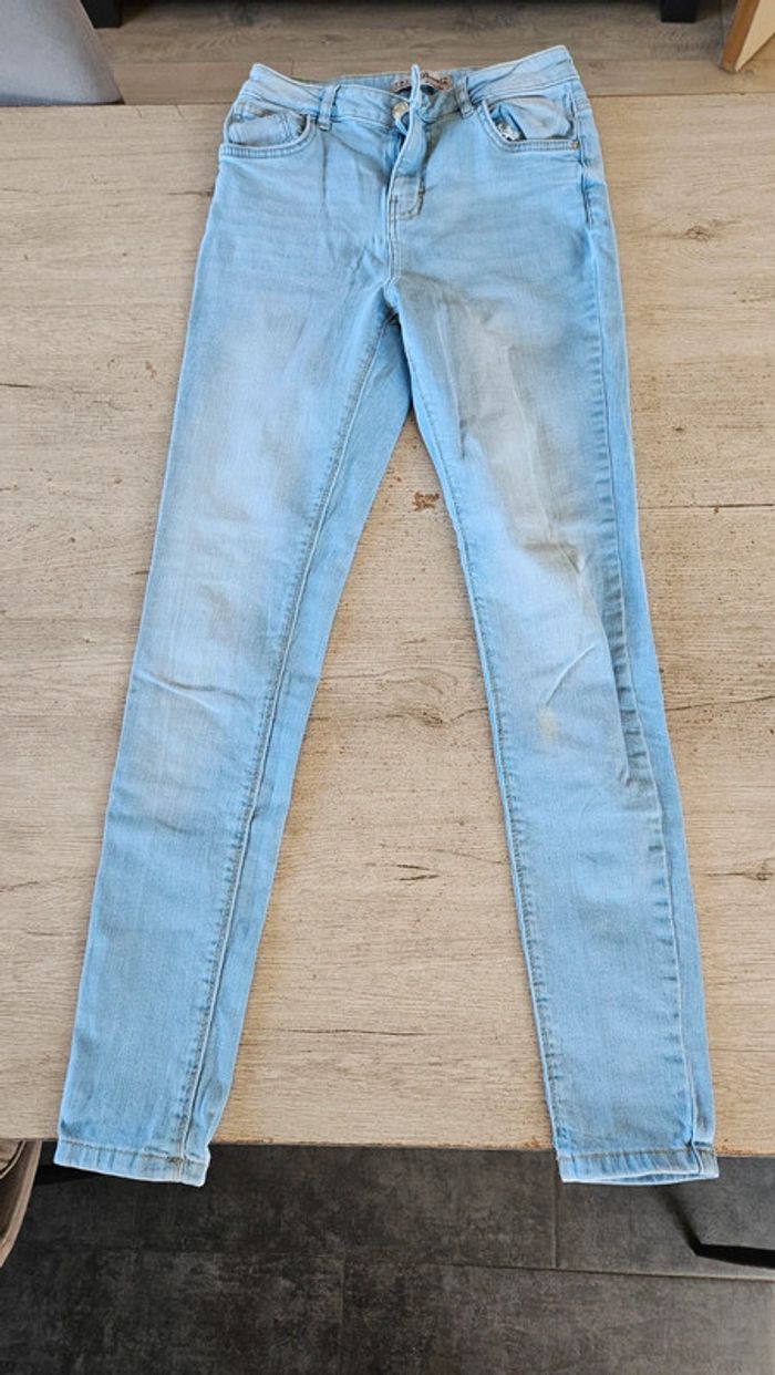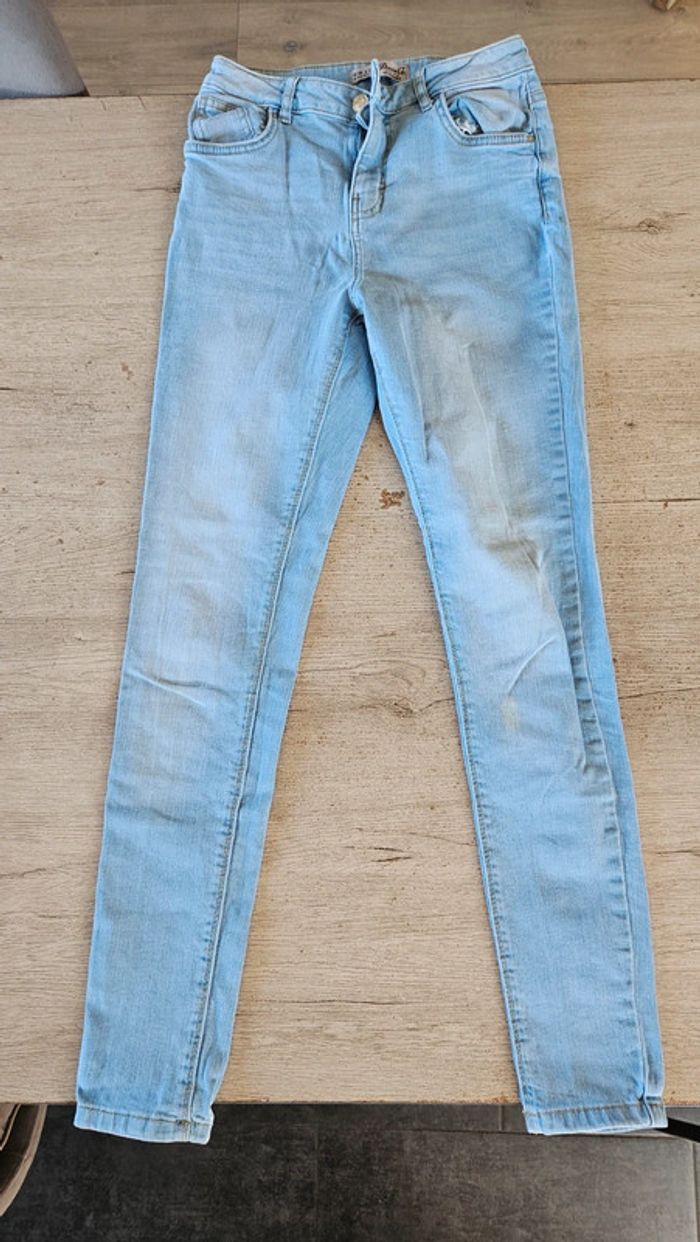 Jean s bleu très clair, très peu mis. Il est très stretch. Se ferme par 1 bouton et 1 tirette. Poches avant et arrière. Convient pour du 36 ou du 38. Attention, micro tache au genou, à peine visible #deborahtock_femmeM