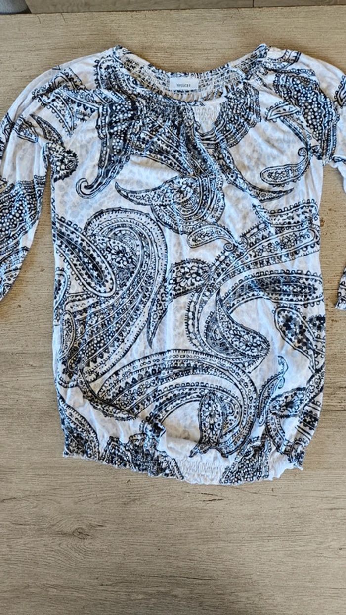 Blouse larhe à manches 3/4, blanche à dessin, Yessica, taille S, nickel - photo numéro 1