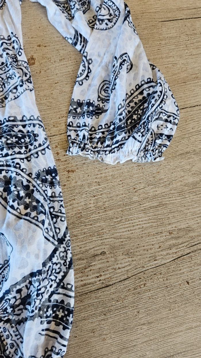 Blouse larhe à manches 3/4, blanche à dessin, Yessica, taille S, nickel - photo numéro 6