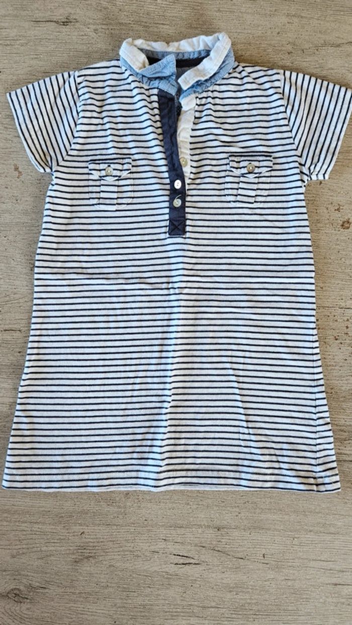 Robe courte classique à manches courtes, blanche lignée bleu, Buissonnière, 6 ans - photo numéro 1