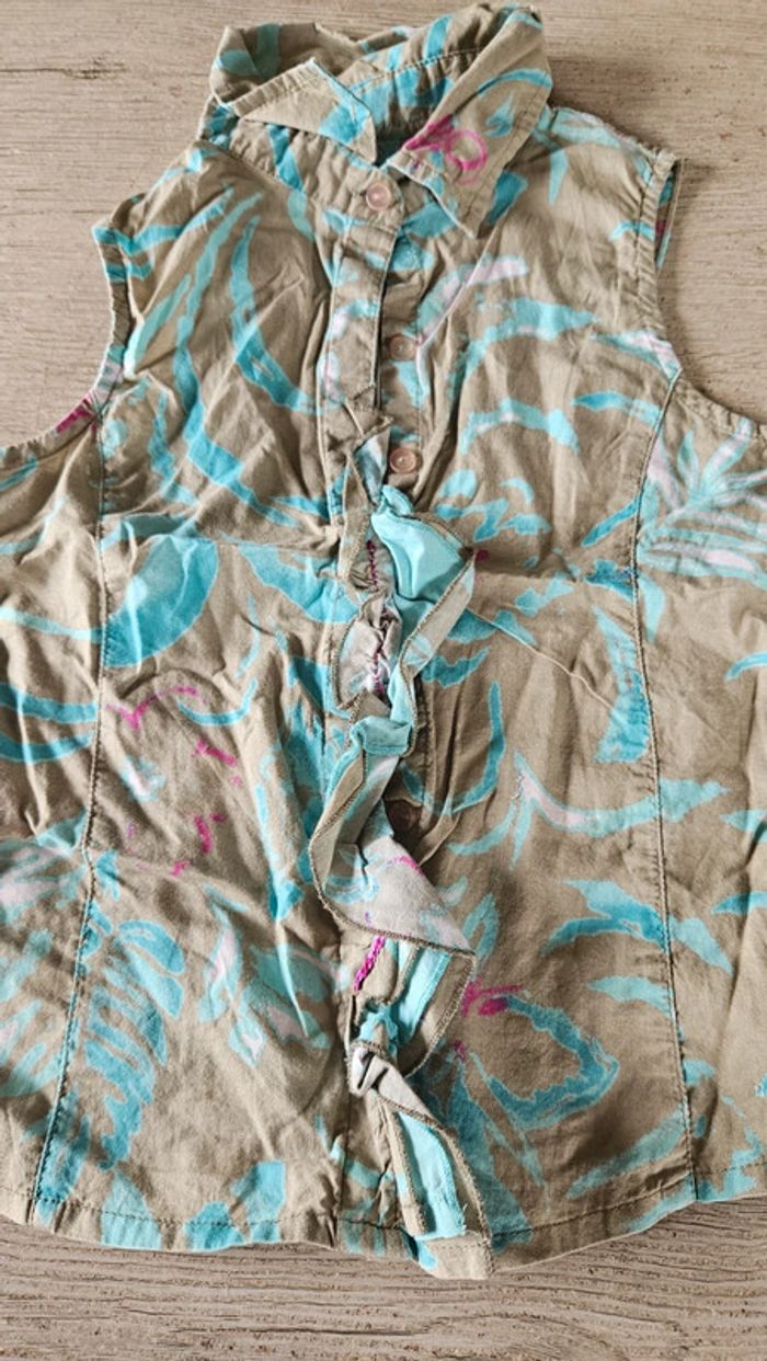 Blouse sans manche avec froufrous. Mise 1 heure donc en état nickel. Convient bien pour du 7 à 8 ans #deborahtock_7ans #deborahtock_8ans