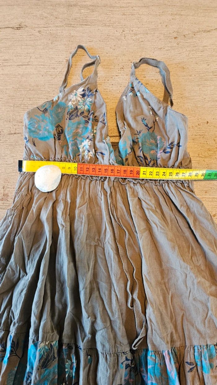 Robe d été courte à bretelles beige foncé et turquoise, taille unique (S à L) - photo numéro 7