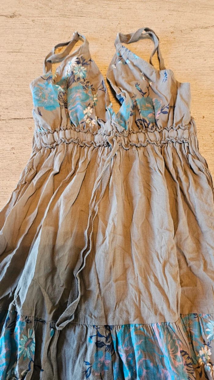 Robe d été courte à bretelles beige foncé et turquoise, taille unique (S à L) - photo numéro 3