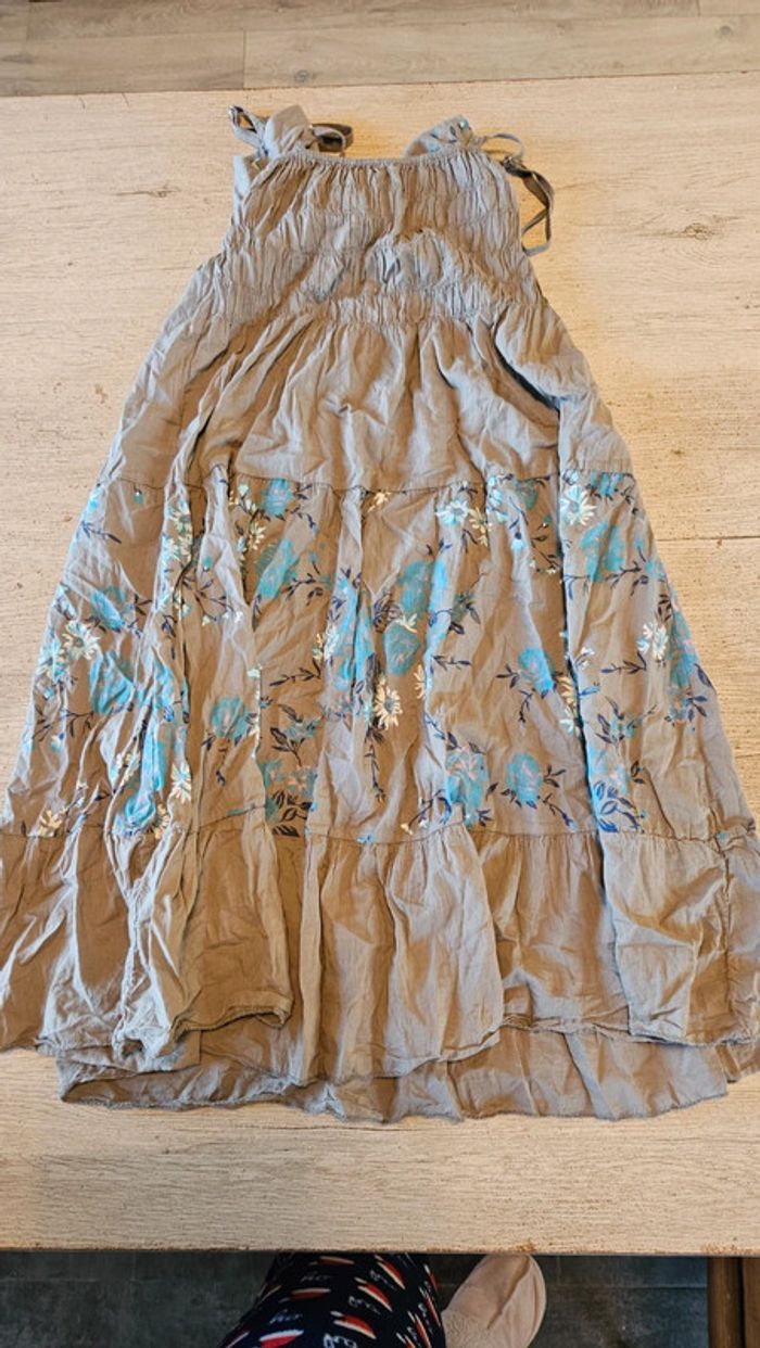 Robe d été courte à bretelles beige foncé et turquoise, taille unique (S à L) - photo numéro 2