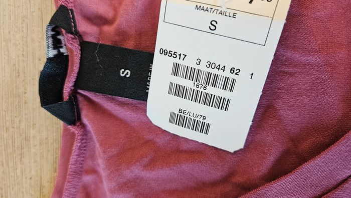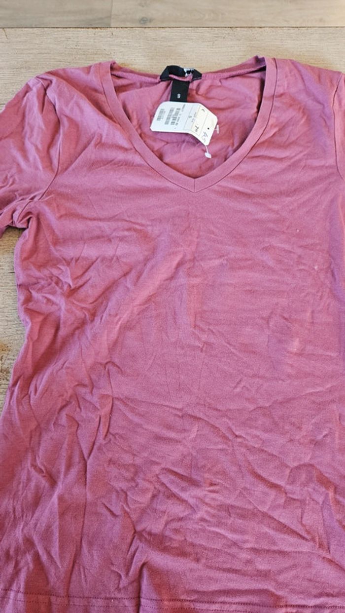 T shirt stretch mauve à manches 3/4, H&M, taille S, neuf avec étiquette - photo numéro 5