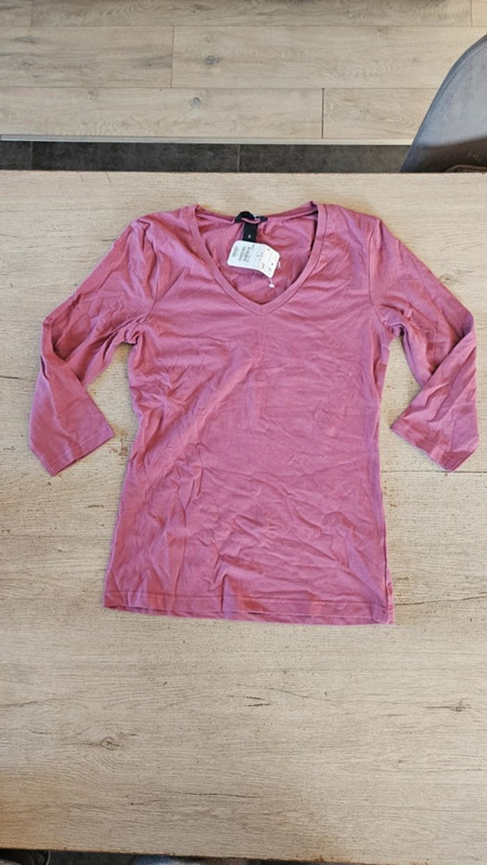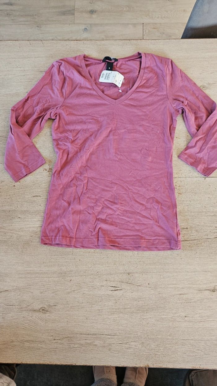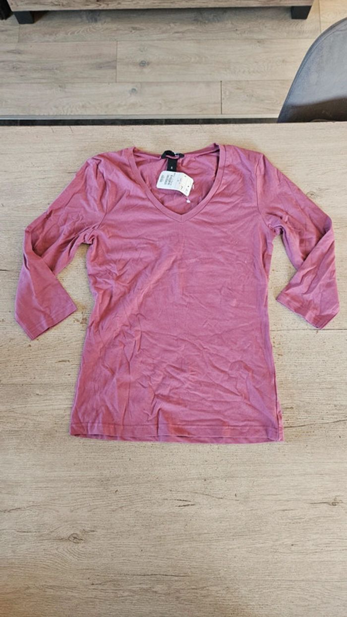 T shirt stretch mauve à manches 3/4, H&M, taille S, neuf avec étiquette - photo numéro 1