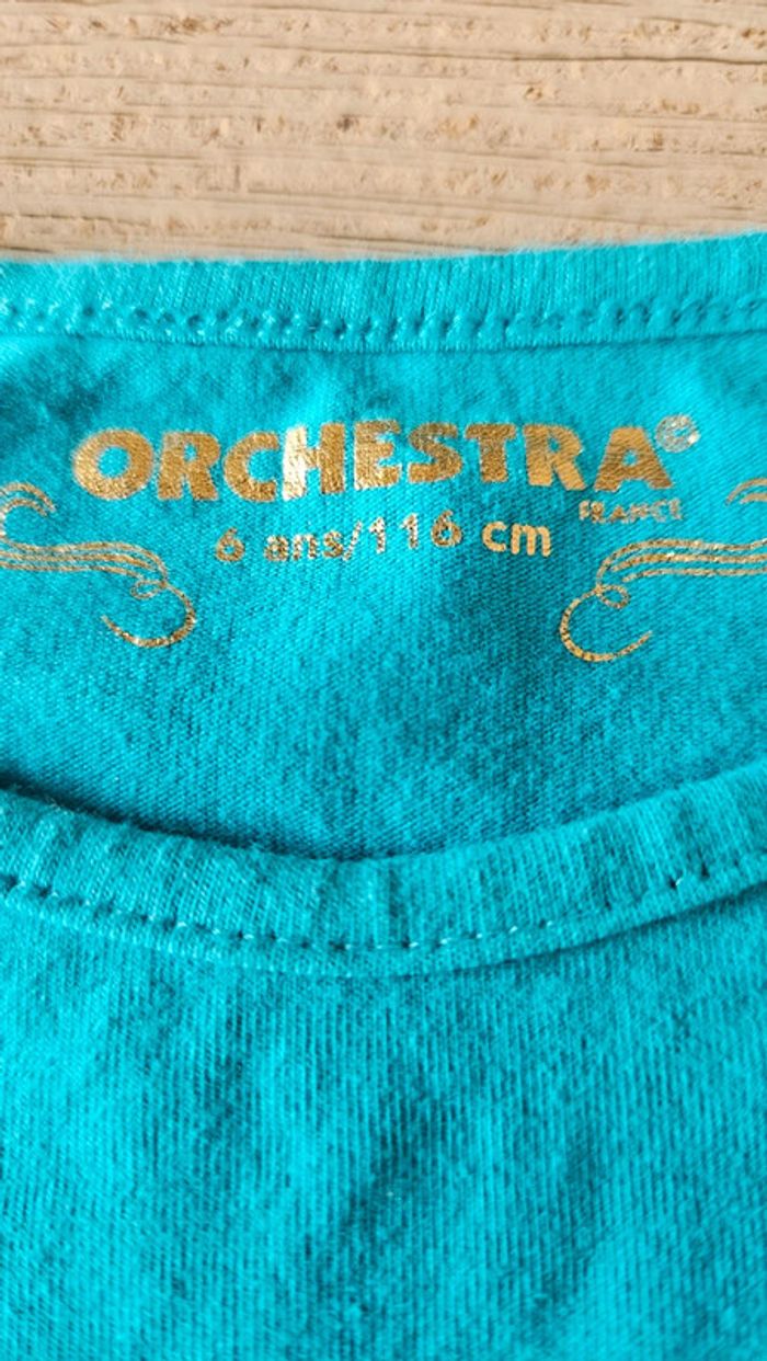 T shirt turquoise à manches longues, Orchestra, 6 ans, jamais mis - photo numéro 4