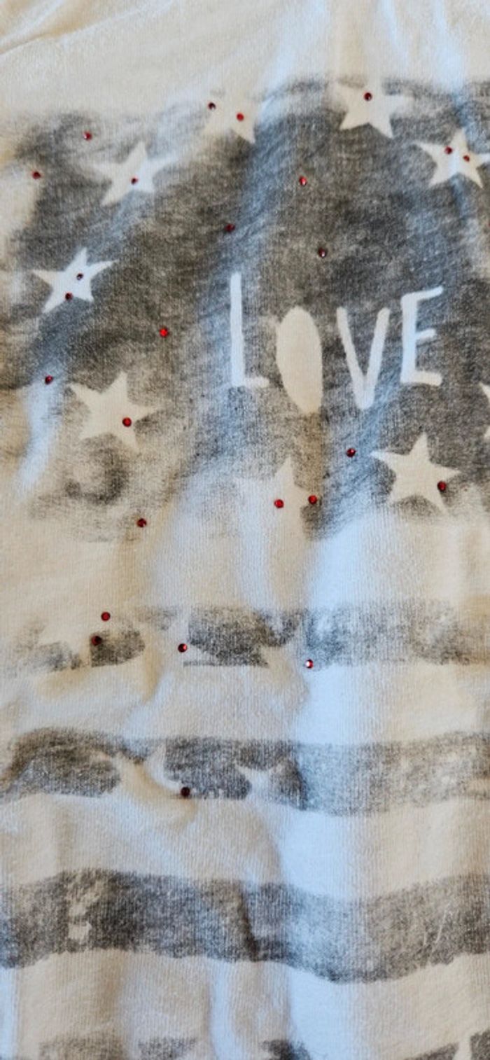 T shirt fille à manches longues. Très peu mis donc en très bon état. Col rond. Dessin avec quelques sequins rouges. #deborahtock_7ans #deborahtock_8ans