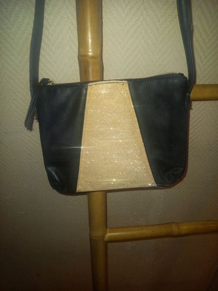 Sac a main noir  avec paillettes doré - photo numéro 1
