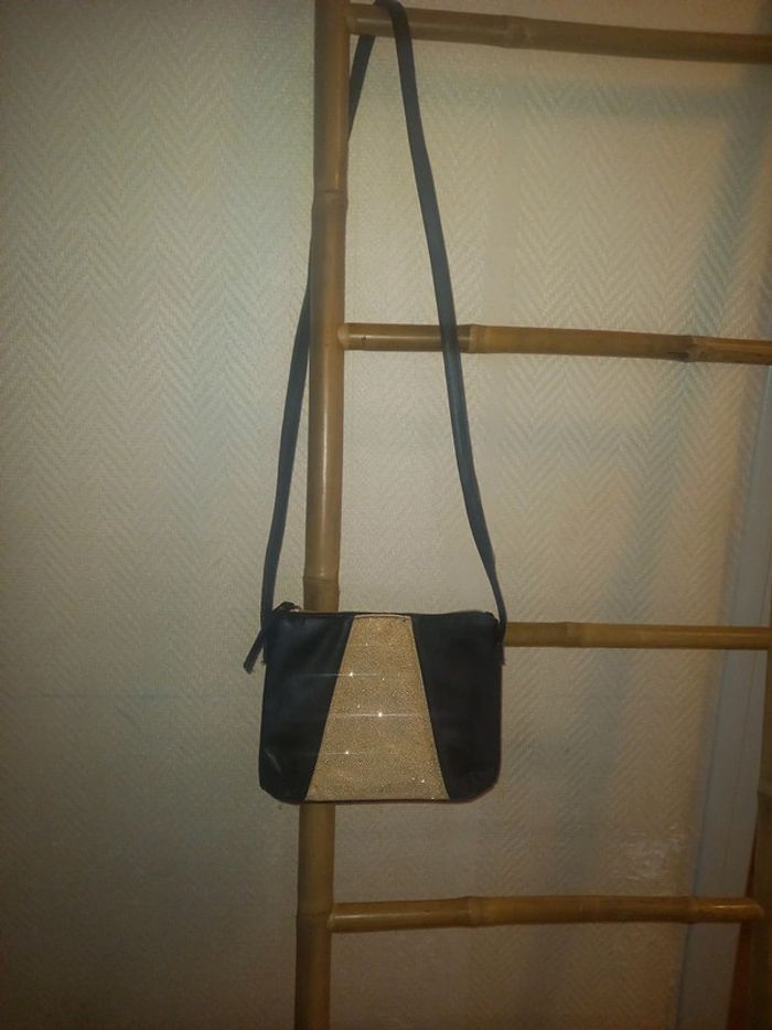 Sac a main noir  avec paillettes doré - photo numéro 3