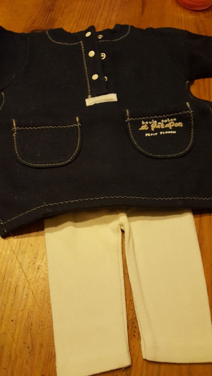 Marque Ozona Taille 3 mois Petite robe bleu marine forme boule avec leggings creme