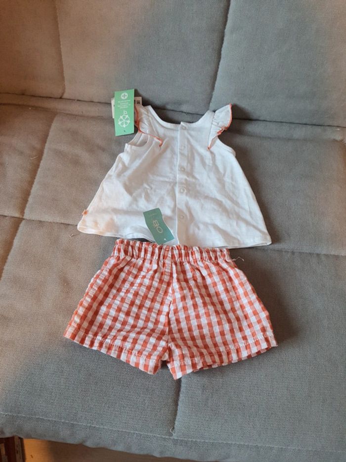 Ensemble Obaïbi taille 6 mois t-shirt et short motif vichy neuf avec étiquettes - photo numéro 1
