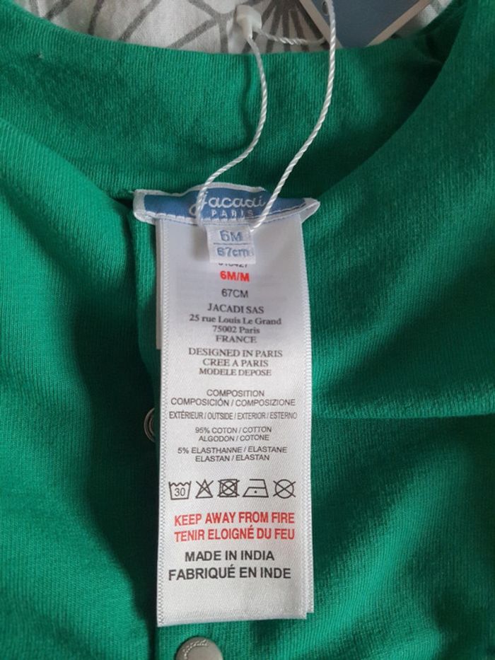 Gilet en coton vert Jacadi taille 6 mois neuf avec étiquettes - photo numéro 5