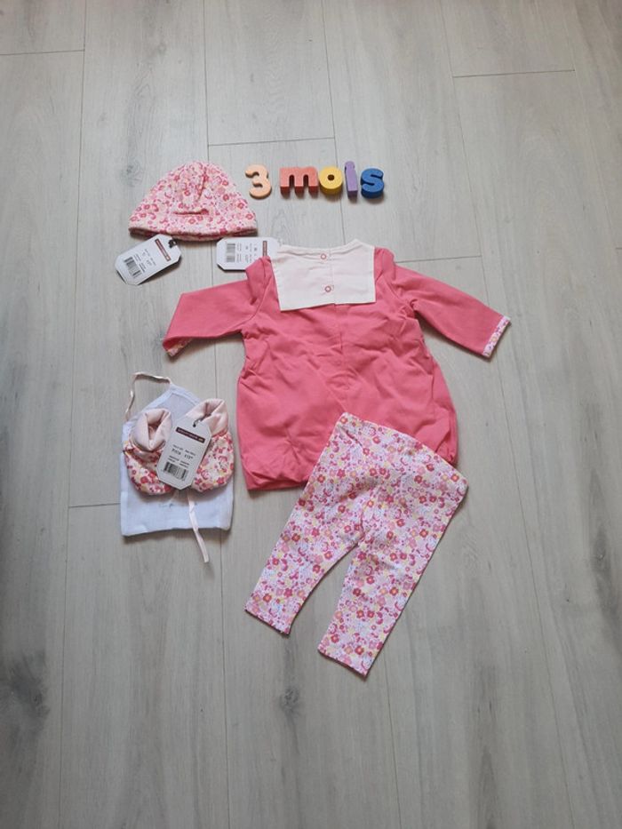 Ensemble Sergent Major taille 3 mois robe, legging, bonnet et chaussons neuf avec étiquettes