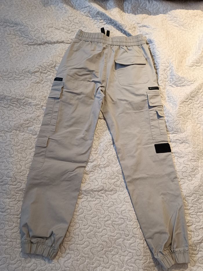 Pantalon Cargo Garçon Beige Multi Poches Bas du Pantalon en élastique XS/34 Bershka Très Bon État