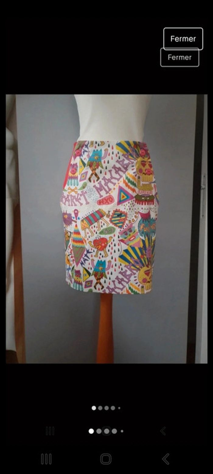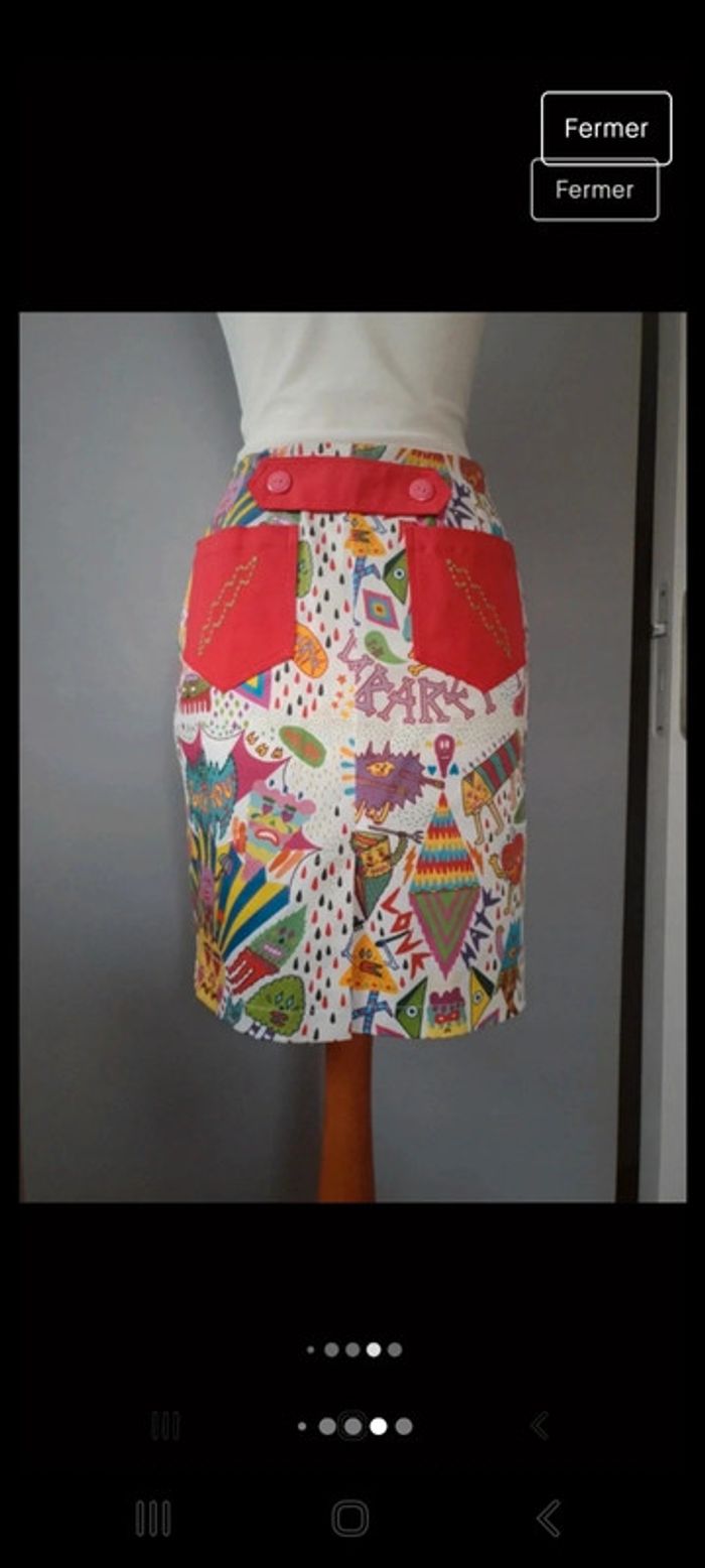Très jolie jupe originale imprimée longueur 50cm coupe seyante poches et boutons sur les côtés t 36 #djamila1962t36