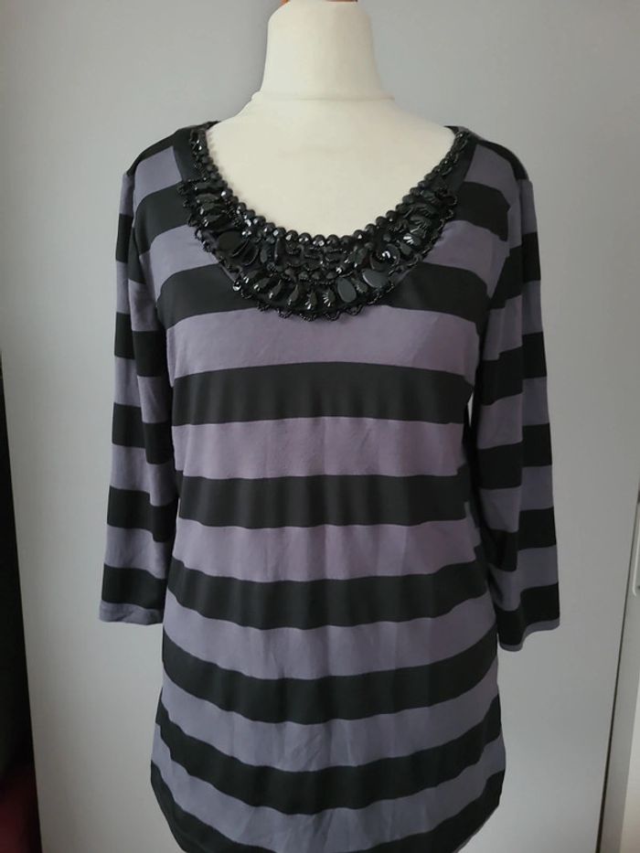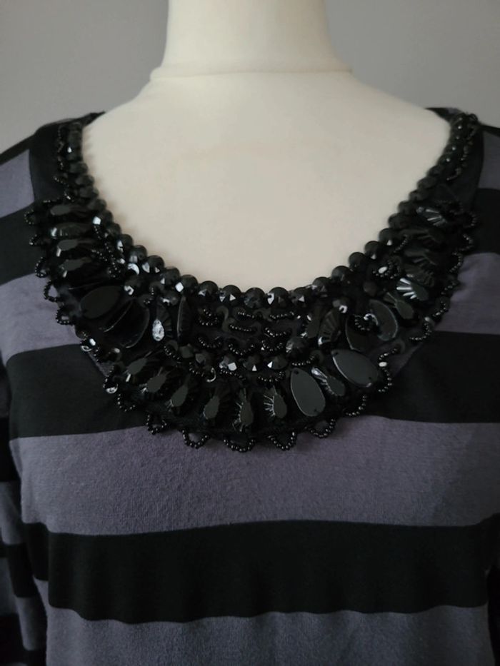Manches 3/4 col grosses perles t 38