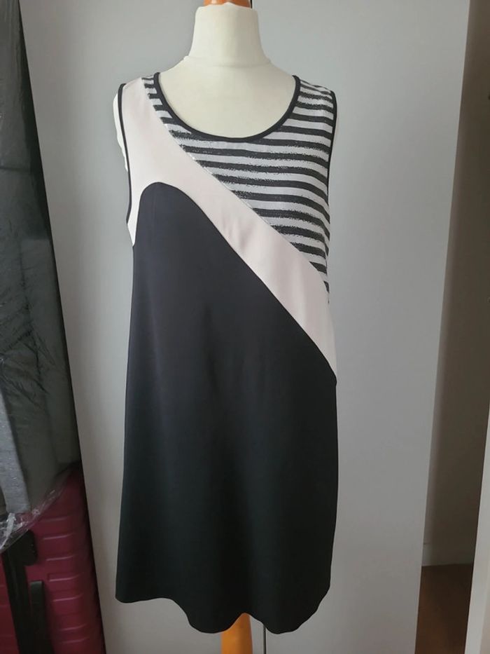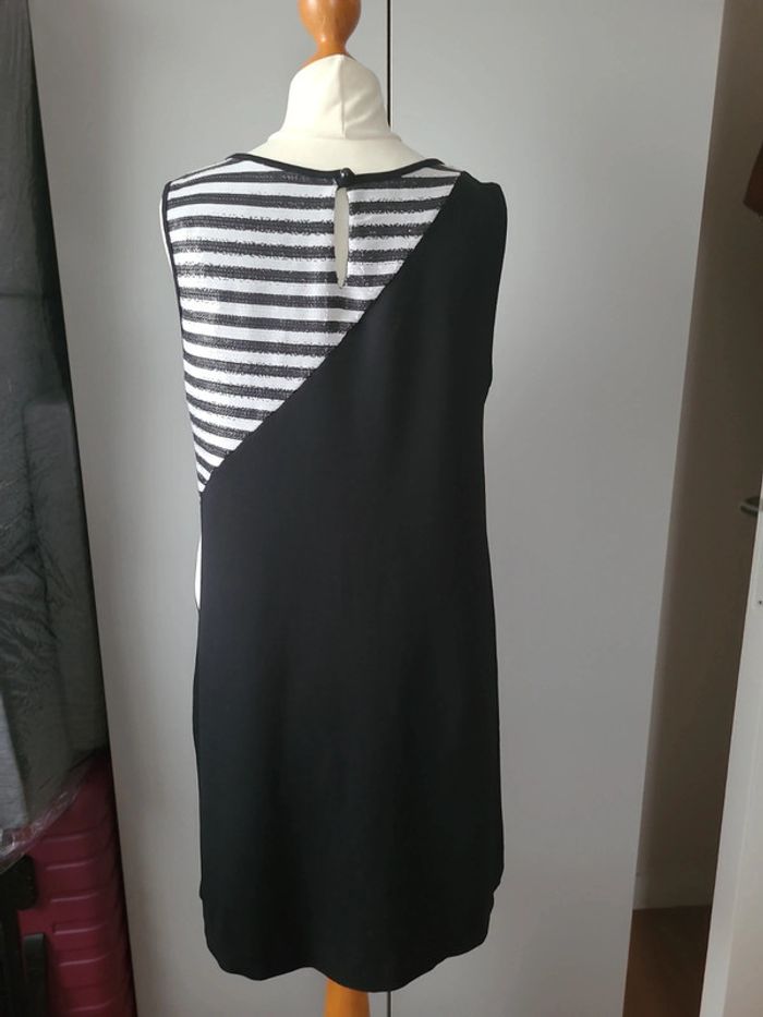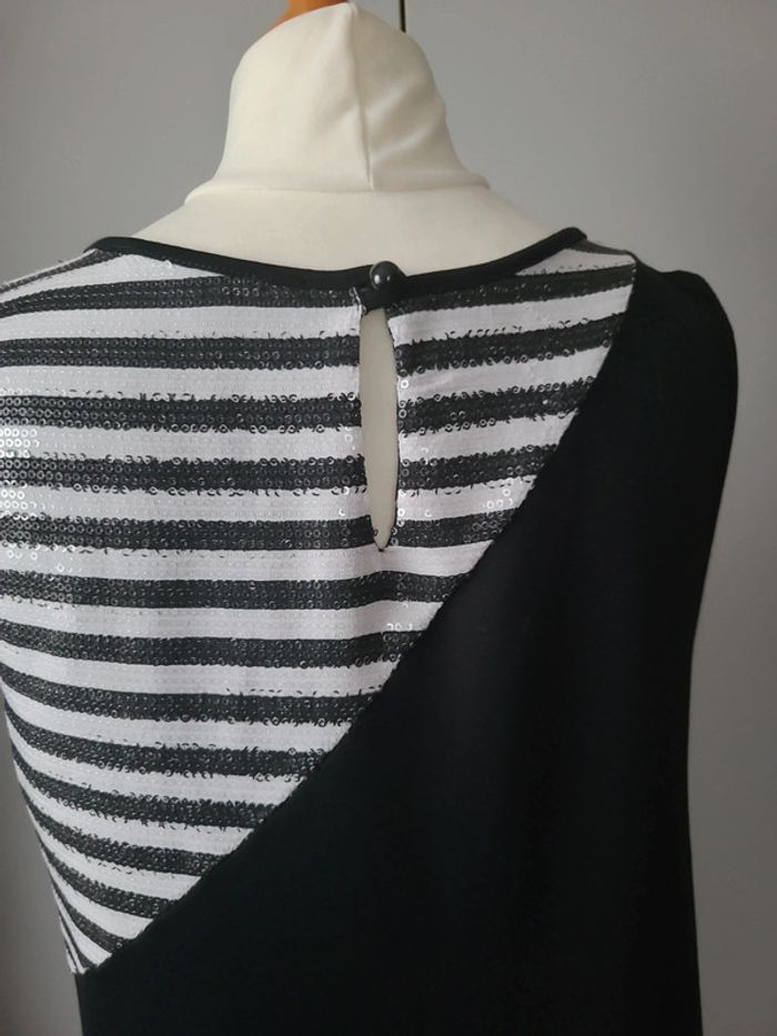 Étiquette 40(petit) va pour une t 38 longueur 82cm sequins blancs et noirs aux niveaux des rayures