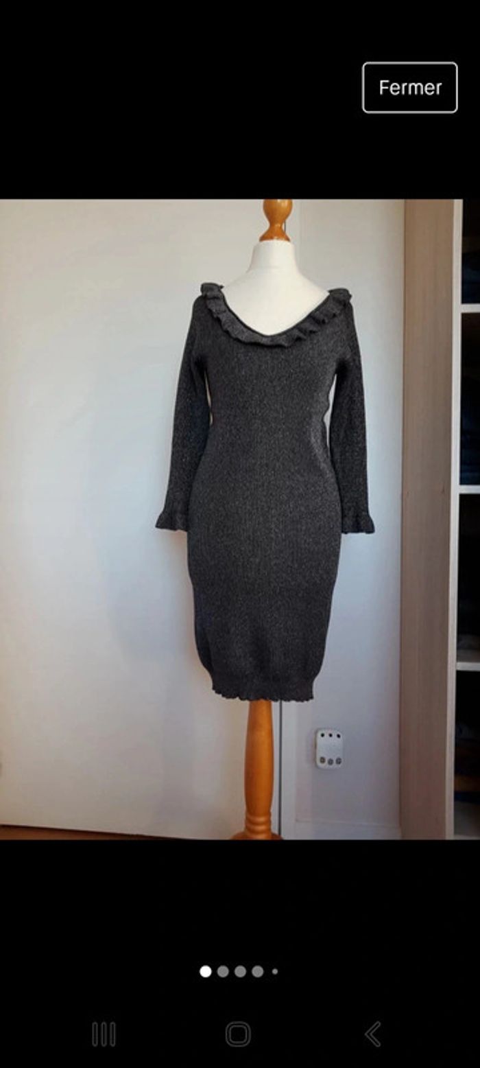 Robe en maille cotelé noire à effet brillant argenté t 36