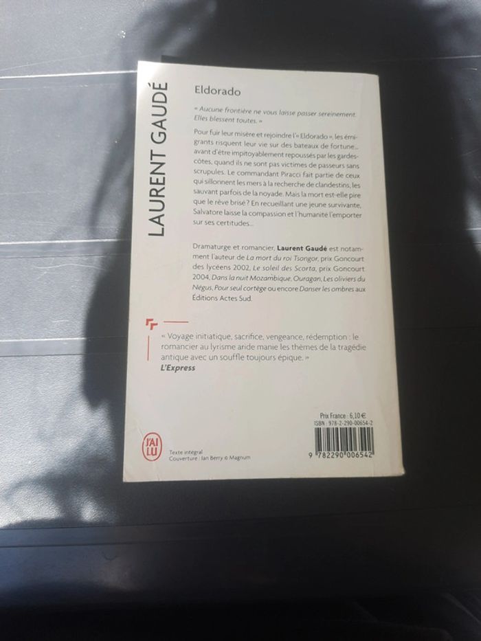 Livre eldorado de Laurent Gaudé. Livre un peu abîmé mais pas gênant pour lire. J'ai lu #livrejennycdu76 #eldorado #laurentgaudé