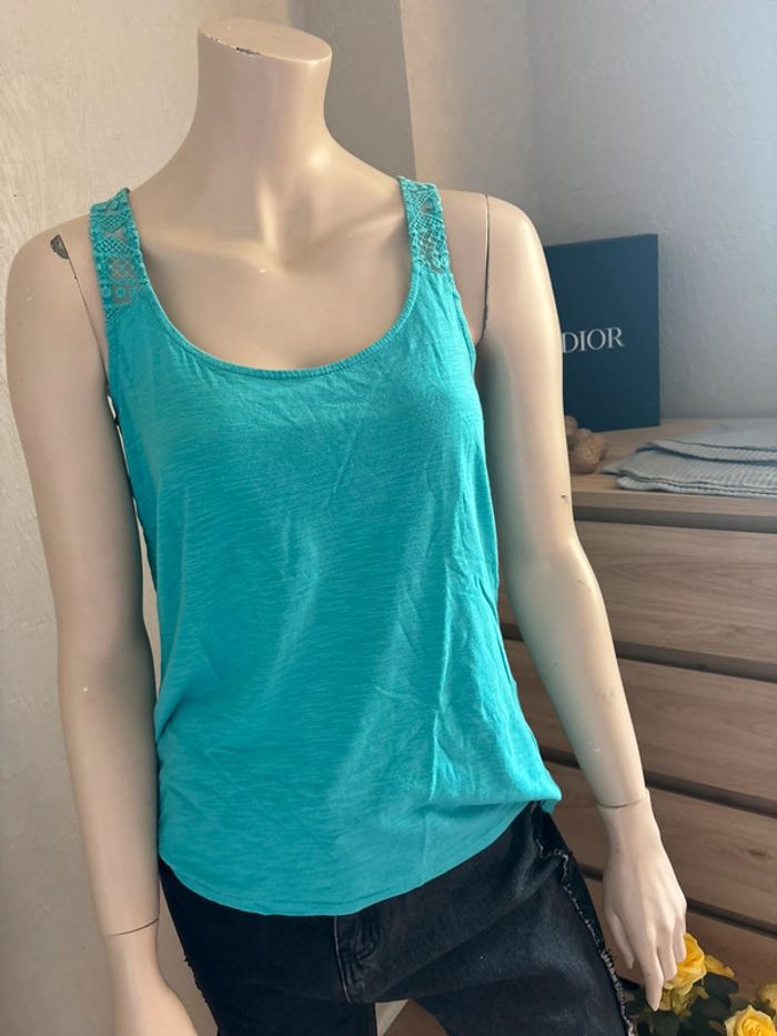 Débardeur bleu clair Très bon état Hésite pas si tu as des questions 🤗 Penses à faire des lots pour économiser les frais de livraison 🌹