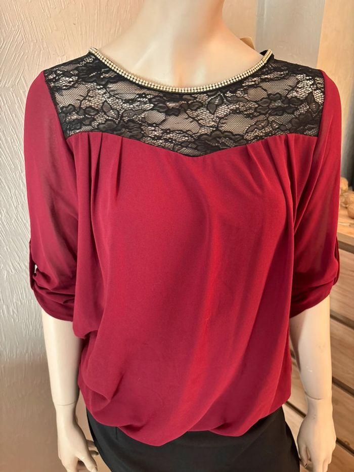 Haut bordeaux Très bon état Détails strass sur encolure Hésite pas si tu as des questions 😊 Penses à faire des lots pour économiser les frais de livraison 🌸