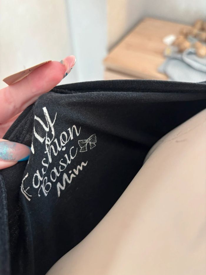 T shirt uni noir Très bon état Hésite pas si tu as des questions 😊 Penses à faire des lots pour économiser les frais de livraison 🌸