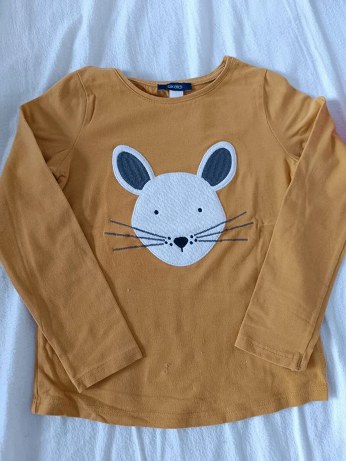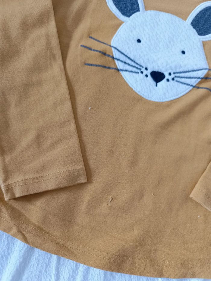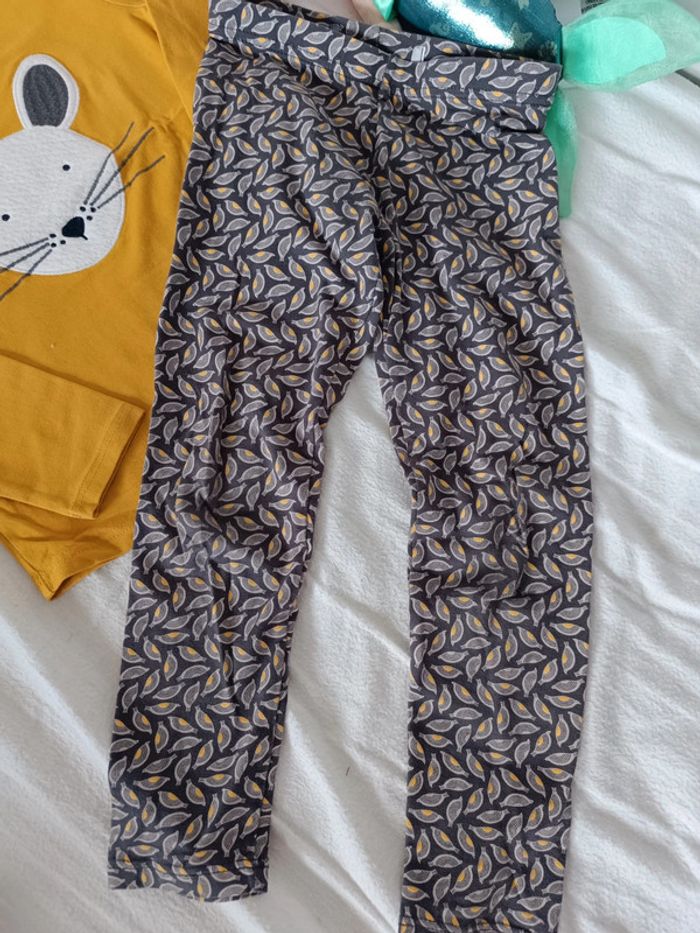 Ensemble 2 pièces de chez Okaïdi Legging aux motifs gris et moutarde T-shirt manche longue avec tête de souris en pilou. Léger accro recousu sur le t-shirt visible sur la dernière photo. Taille 6 ans 116 cm