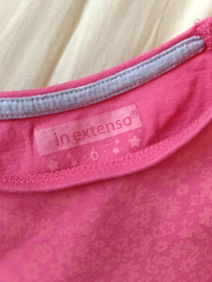 T-shirt rose avec petits motifs de fleurs. Taille 6 ans