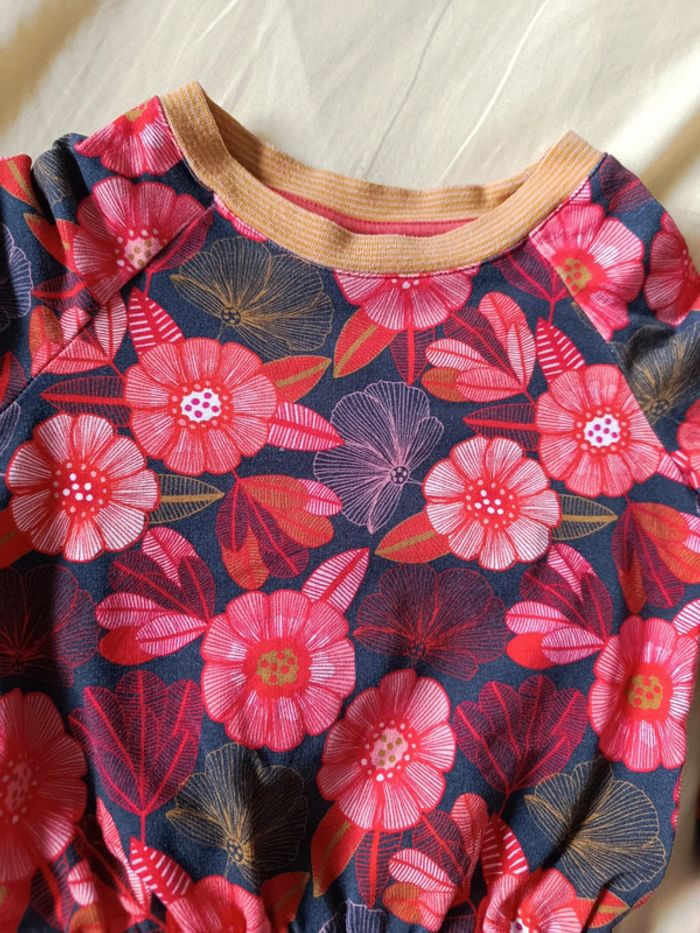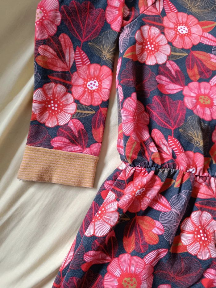 Robe mi-saison . Taille élastique. Bien portée mais ne comporte aucun défaut Taille 116cm.