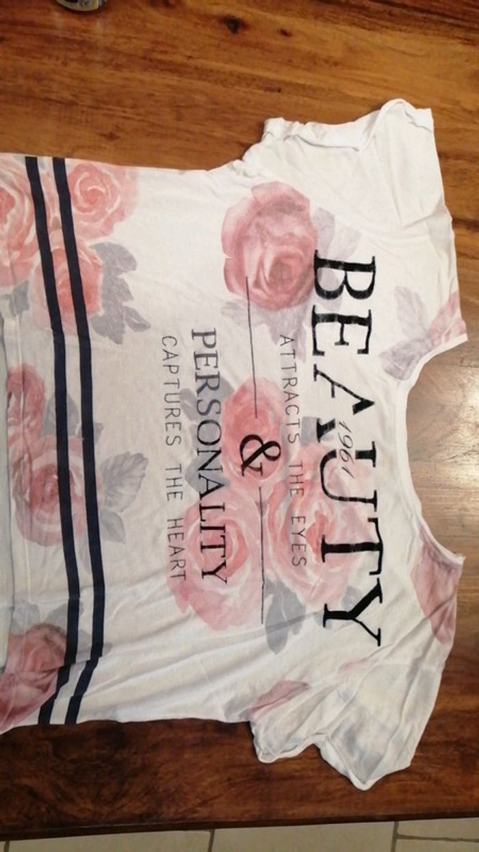 T-shirt blanc à fleur rose - photo numéro 2