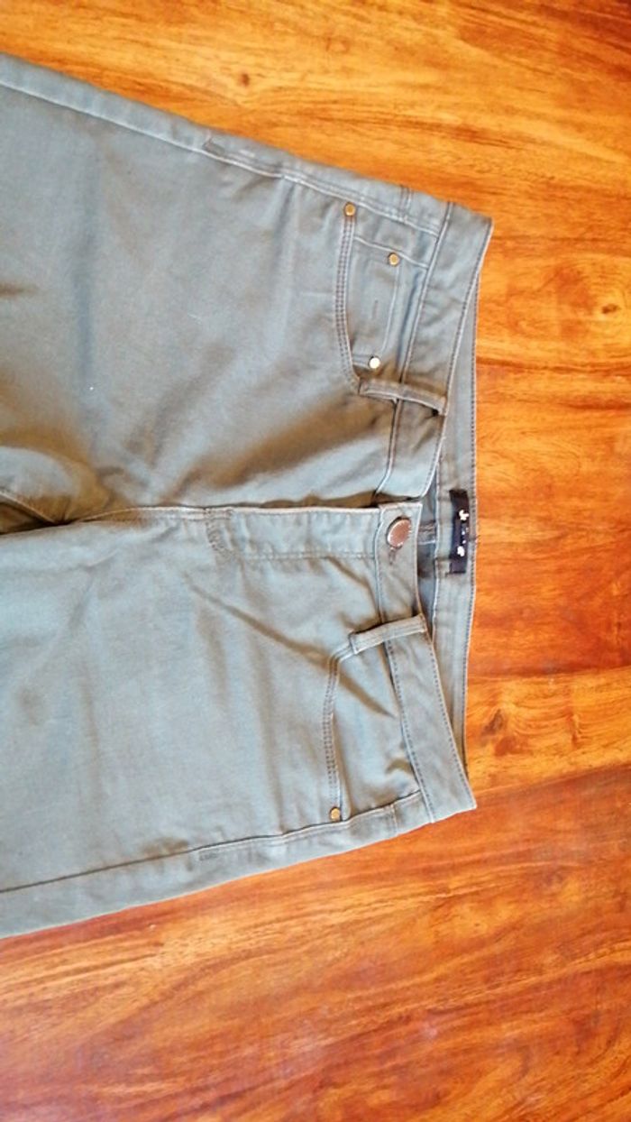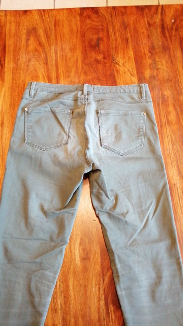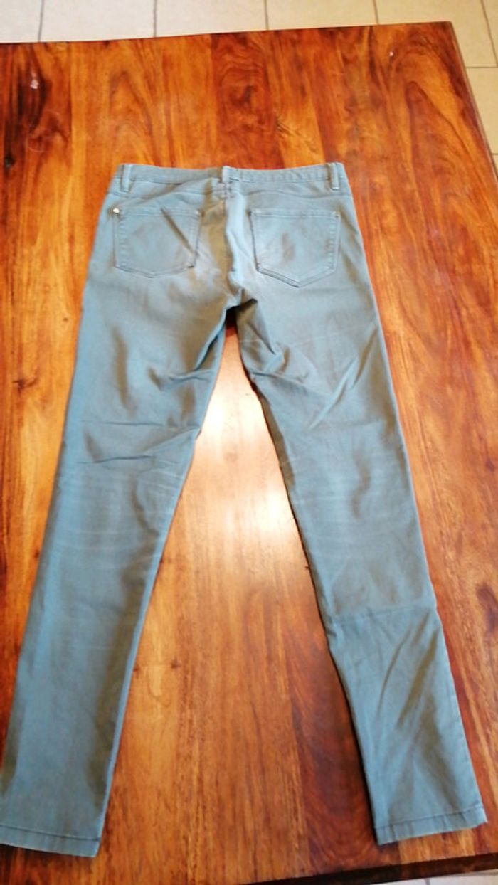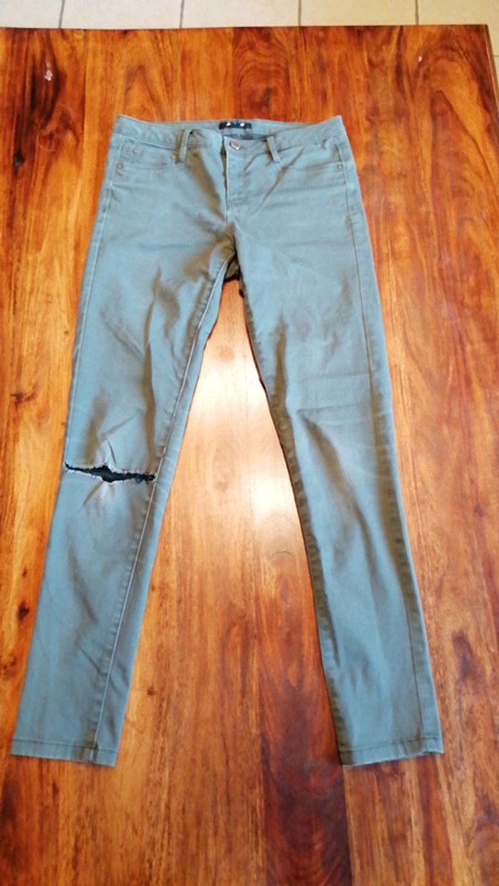 Jeans de couleur kakie, un trou au niveau du genoux, jennyfer